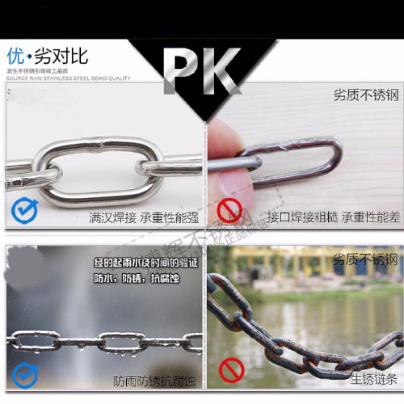 [1.国标正宗304不锈钢链条晒衣链狗链晾晒绳锁车铁链子8mm 6mm2mm粗 2. 需要多少拍多少 如果需要一整根的请留言备注下 3. 304不锈钢水中不生锈。]