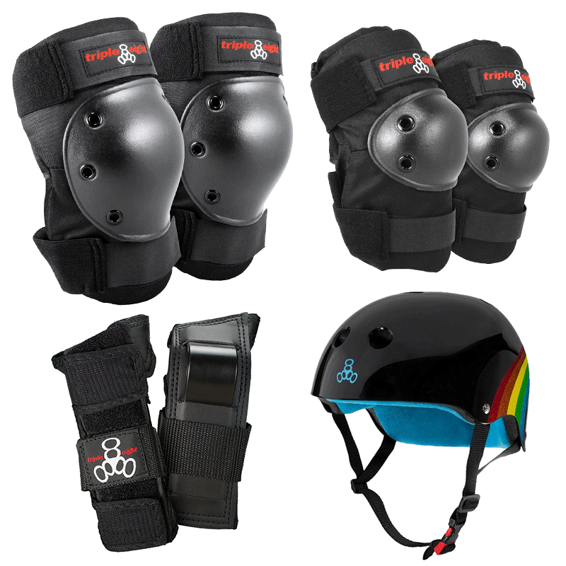 - Комплект, напульсники, налокотники, наколенники, шлем