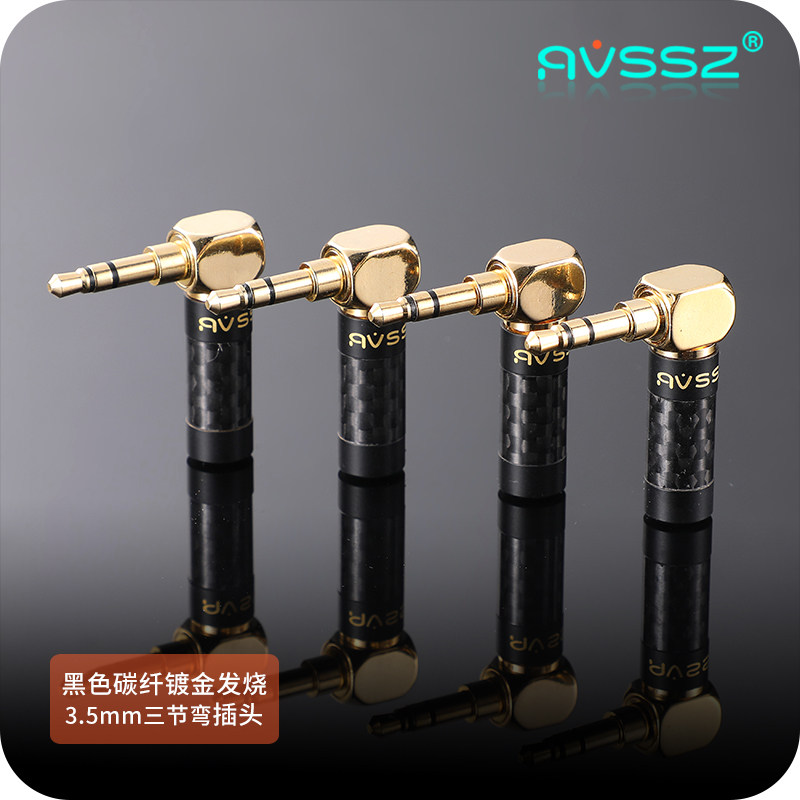 AVSSZ Черное углеродное волокно 3,5 мм Золотая заглушка 3 Изогнутая трехмерная звуковая гарнитура сварка 90 градусов 4 локоть