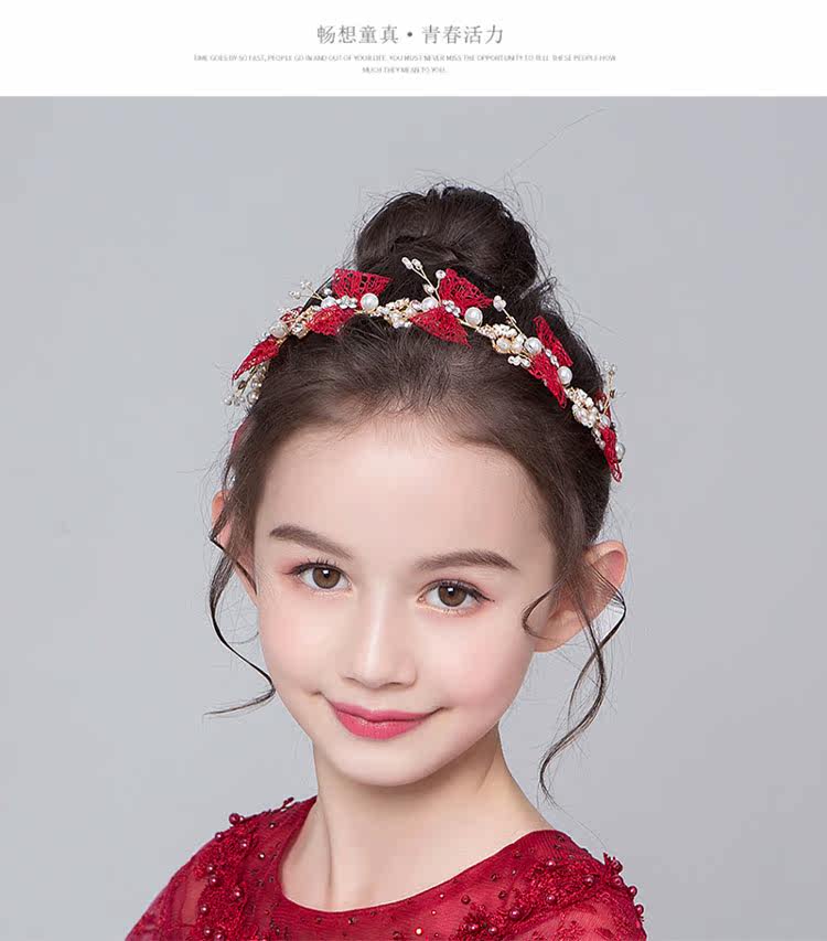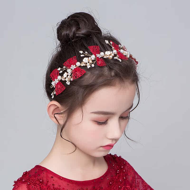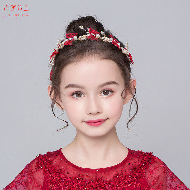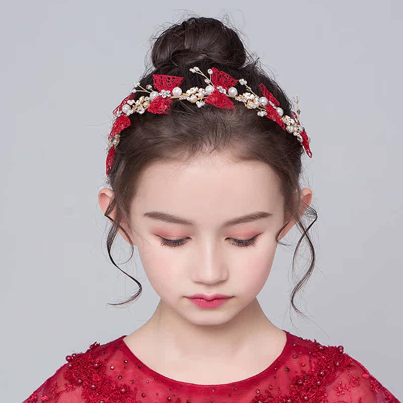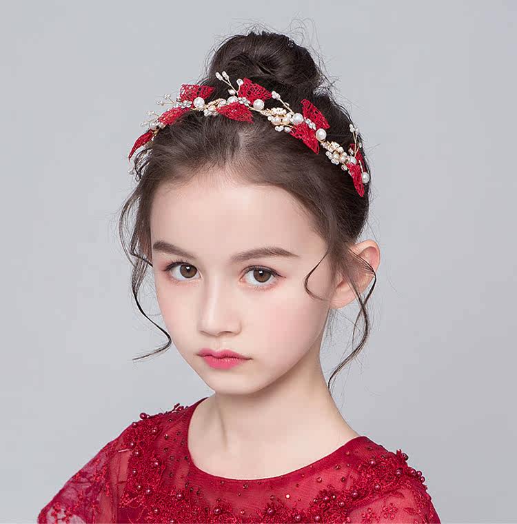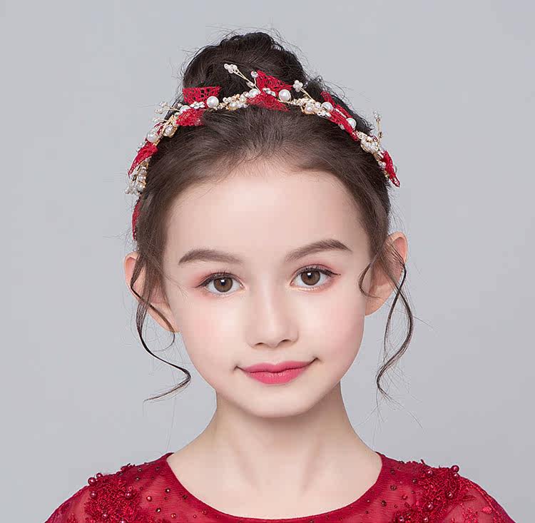 Детская повязка на голову, красный аксессуар для волос, универсальное платье, ободок, Южная Корея