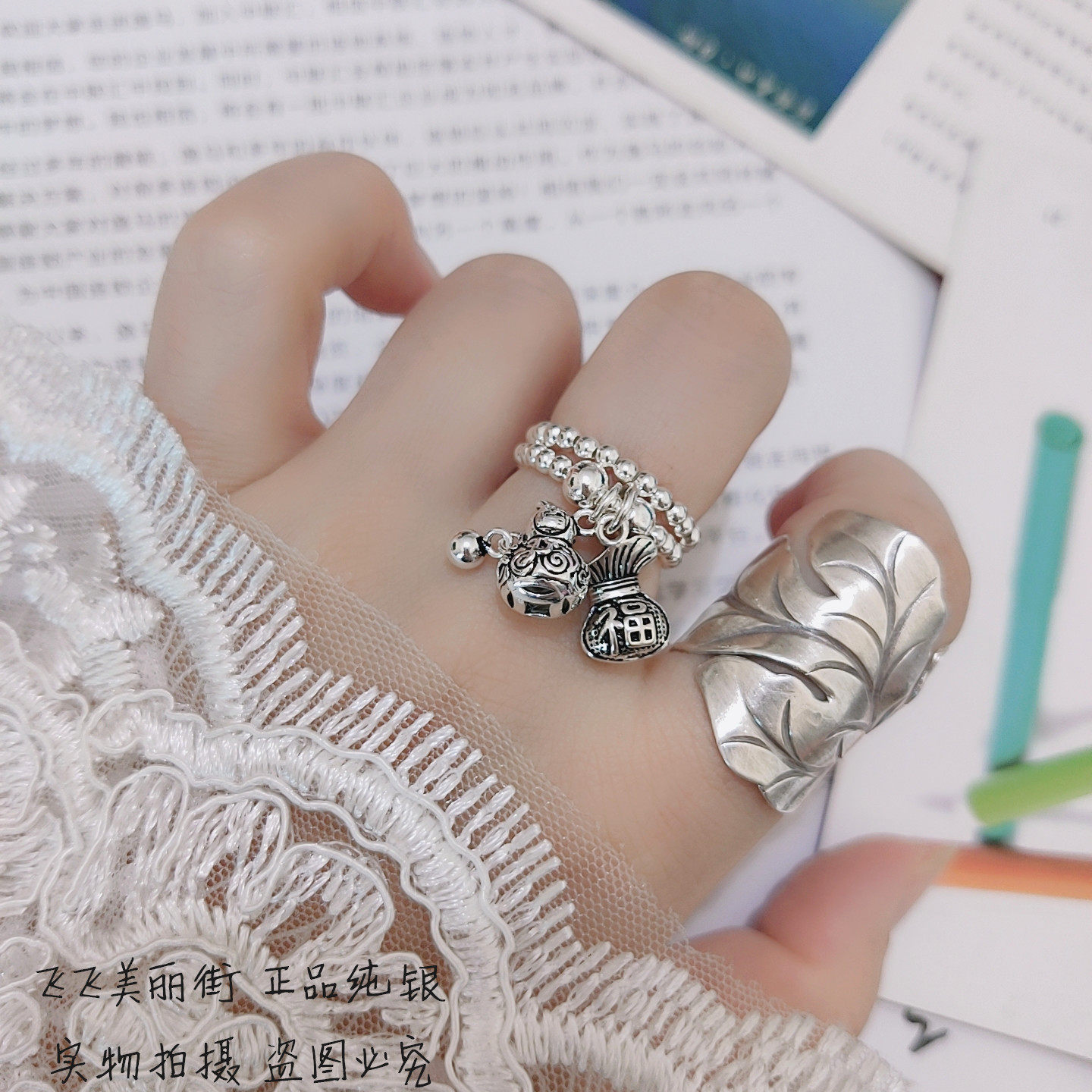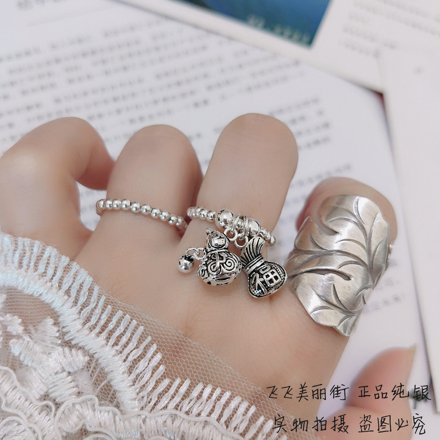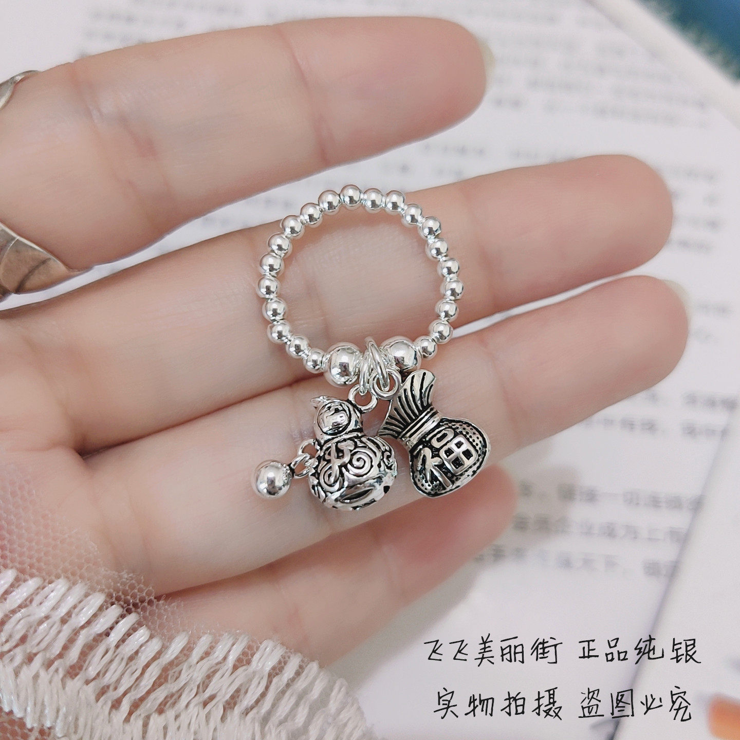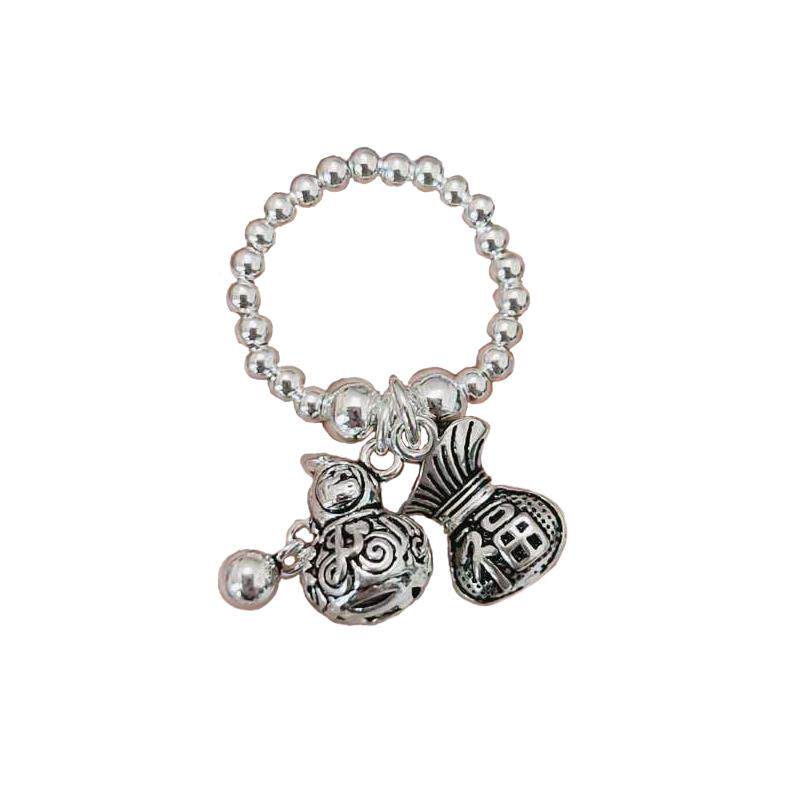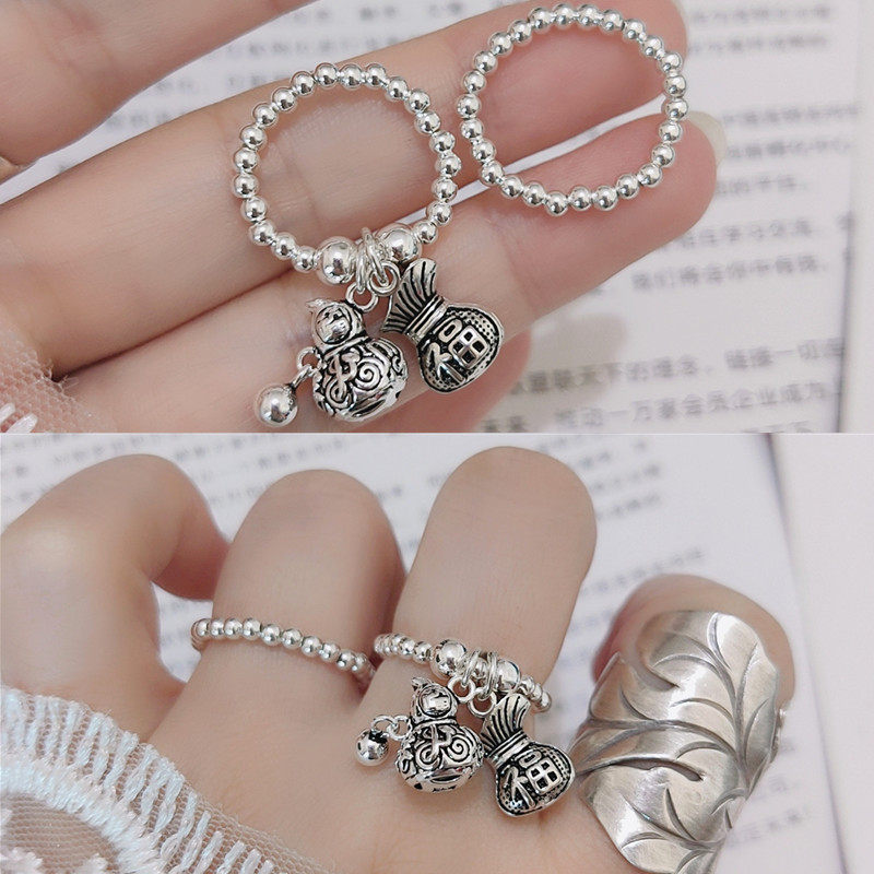 Кольцо из стерлингового серебра 925 пробы, тыква удачи и долголетия, полная здоровья, благословений и богатства, тайский серебряный кошелек, счастливая сумка, эластичные серебряные бусины