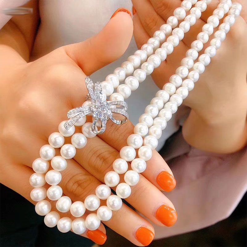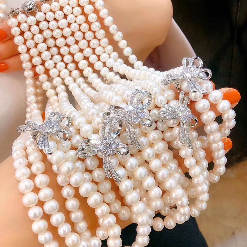 Длинное ожерелье из жемчуга, свитер с бантиком, застежка, аксессуар, японские и корейские, DIY, серебро 925 пробы