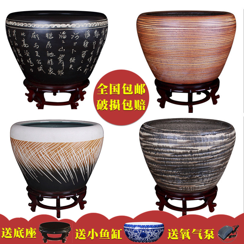 Бесплатная доставка синий и белый керамический аквариум золотой аквариум большой аквариум фарфоровой резервуар вода лилии чернила красная лотос миска лотос