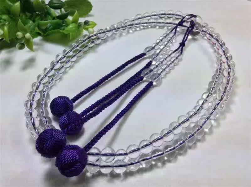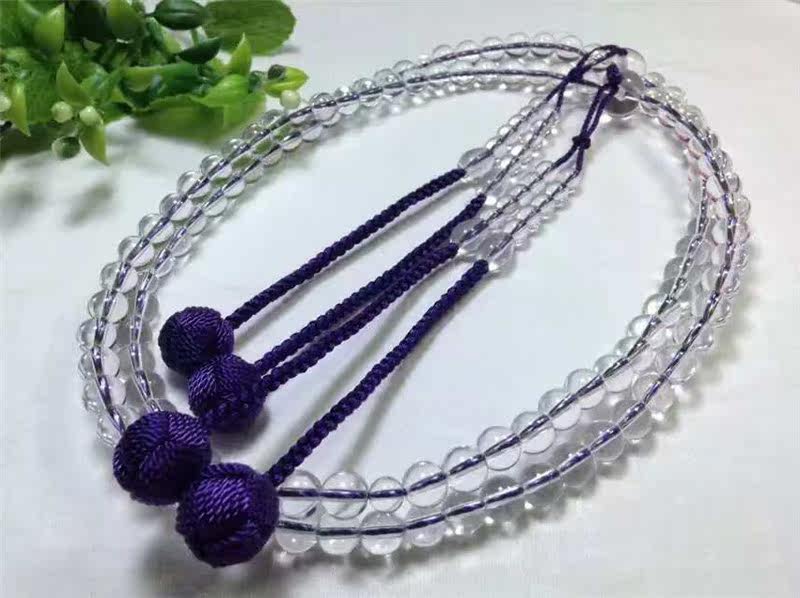Белый японский белый кварц, сиреневые четки из круглых бусин с кисточками, 8mm