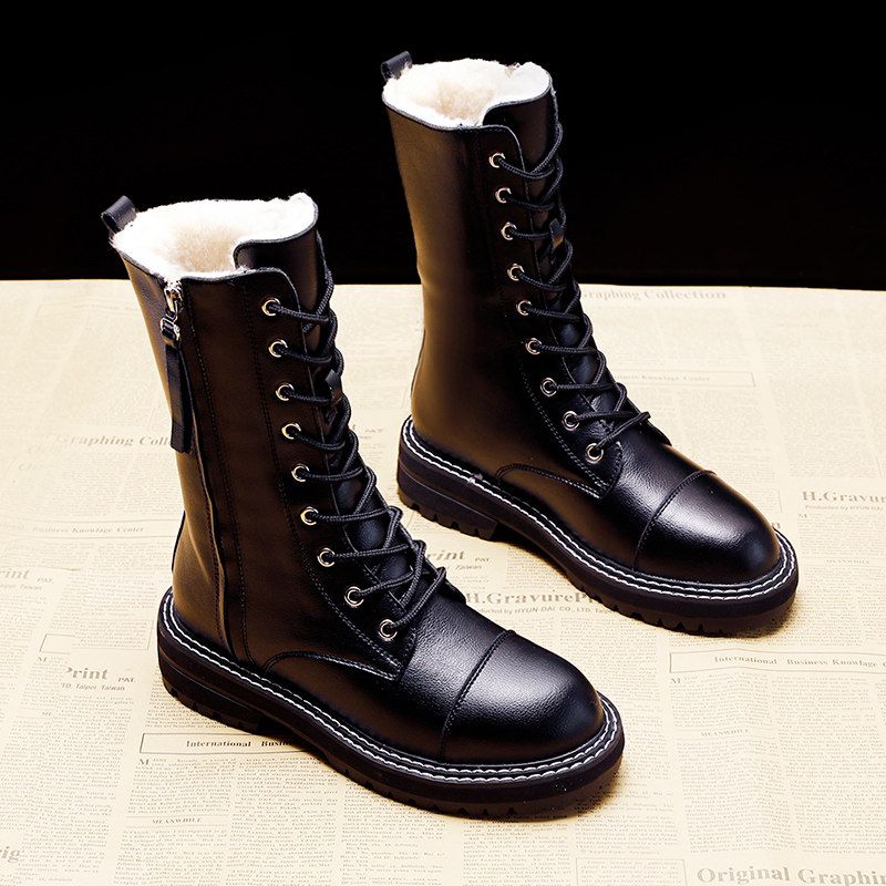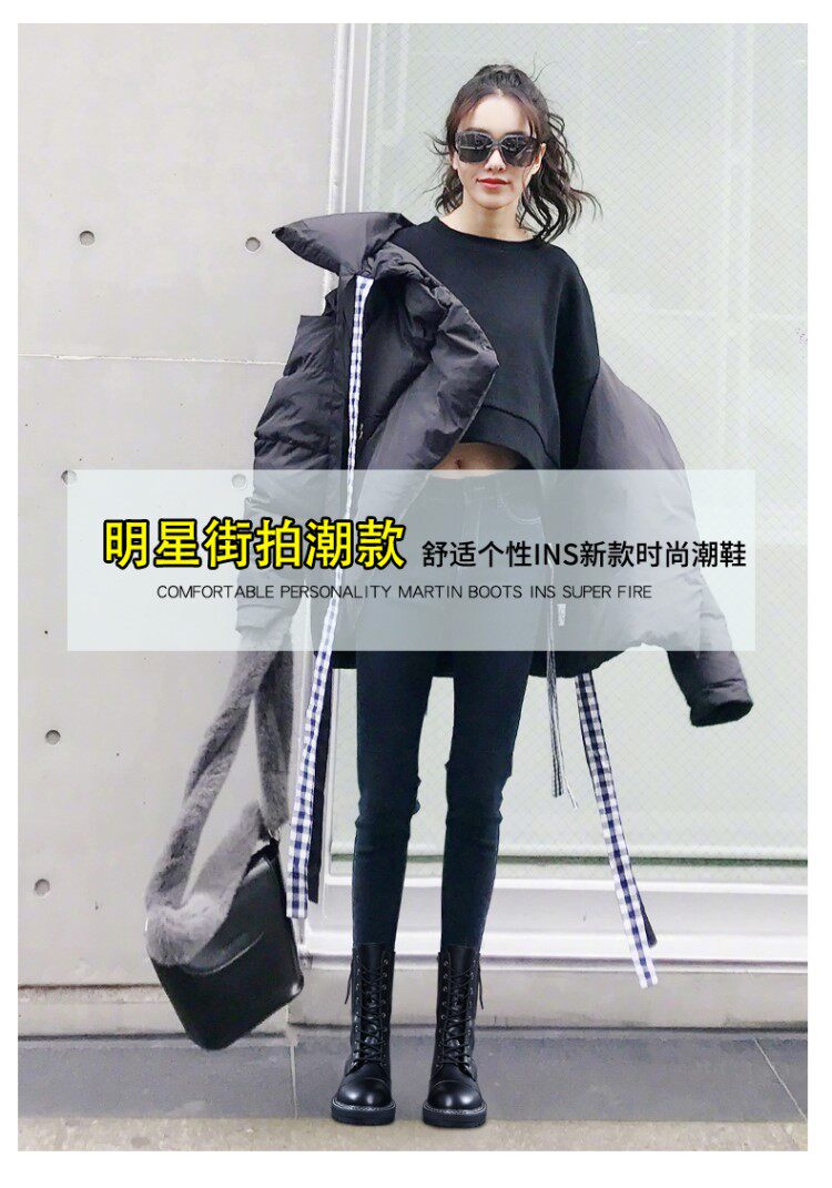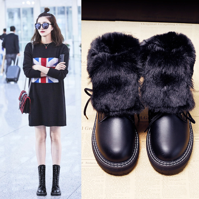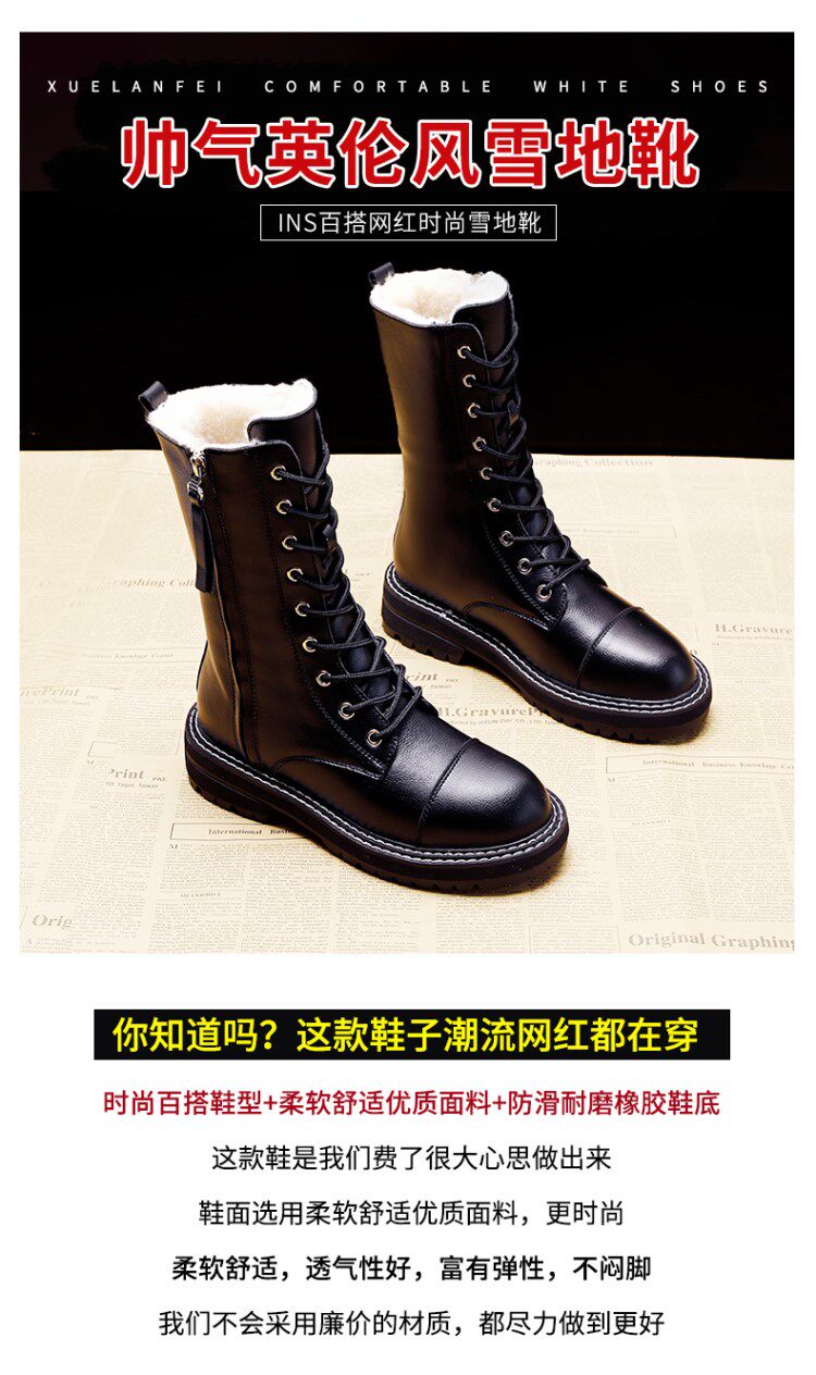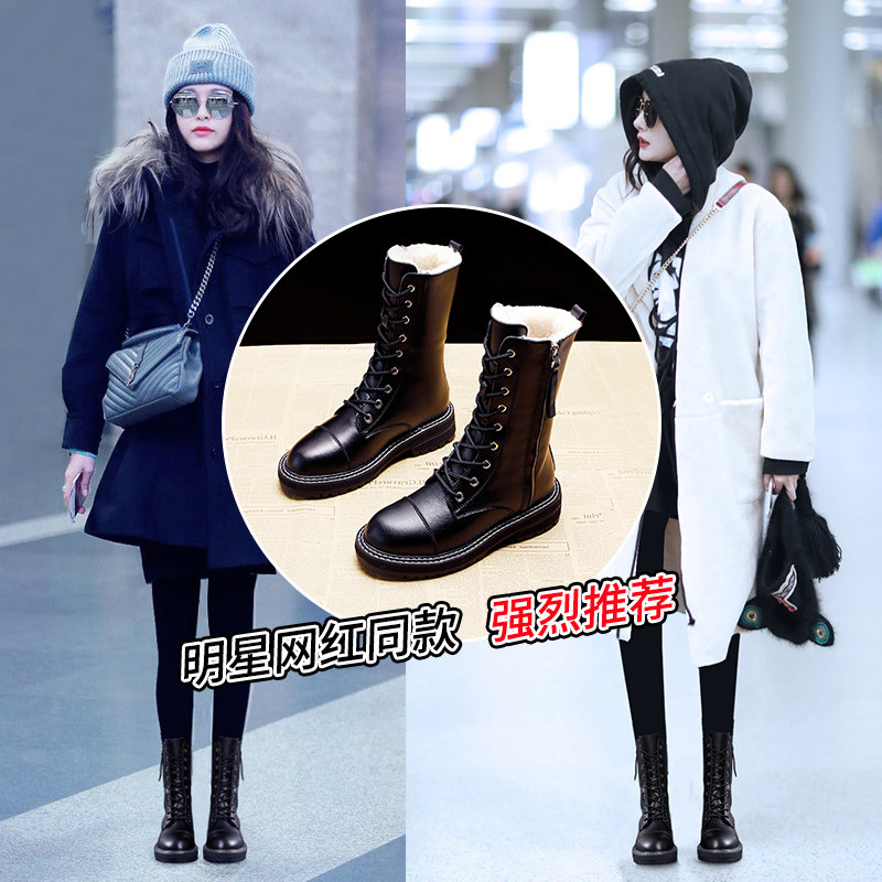 Модные брендовые модные универсальные водонепроницаемые противолыжные ботинки для женщин 2021, зимние новые стильные бархатные теплые ботинки Martin до середины икры со знаменитостями в Интернете