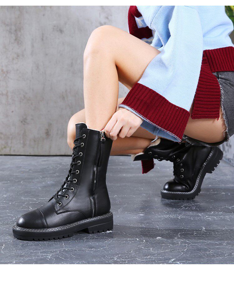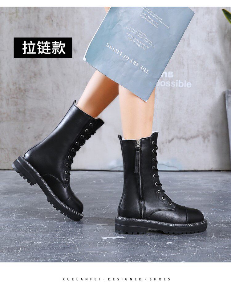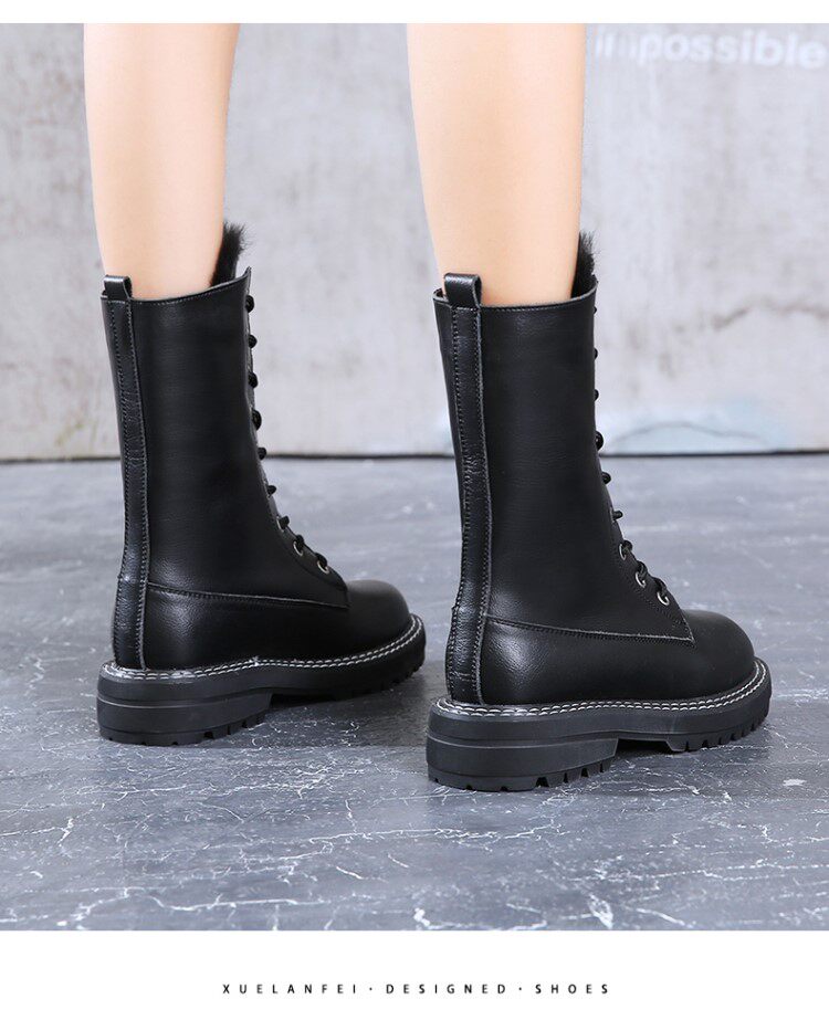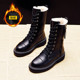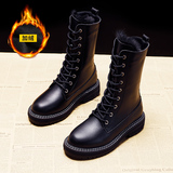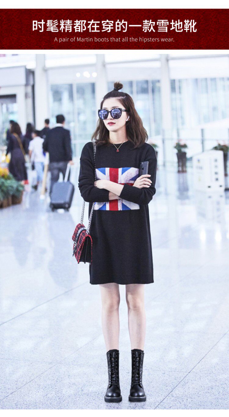 Модные брендовые модные универсальные водонепроницаемые противолыжные ботинки для женщин 2021, зимние новые стильные бархатные теплые ботинки Martin до середины икры со знаменитостями в Интернете