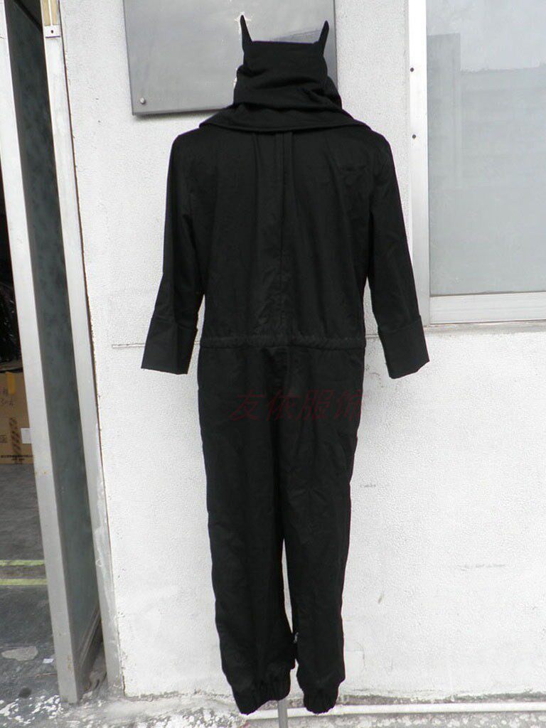 Мужской комплект из 9 предметов: комбинезон, перчатки x2, шапка, черная сумка кунай, большой кунай, маленький кунай, сюрикен, белая повязка, туфли.