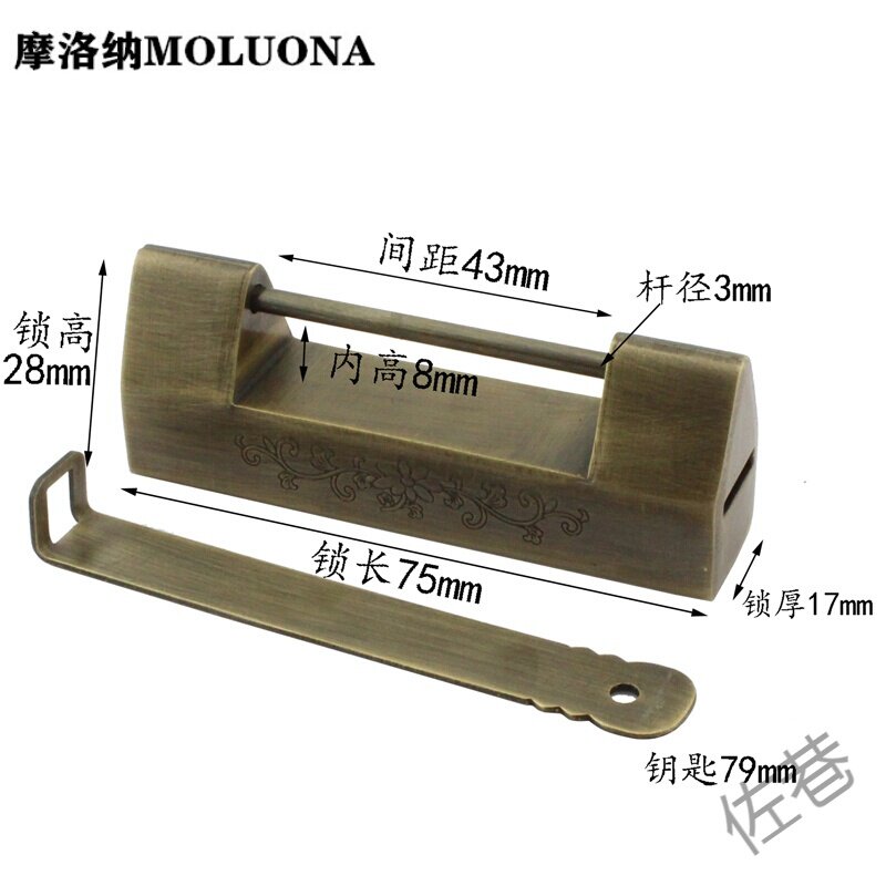 Античный бронзовый замки ретро -замки китайского стиля винтаж маленький замок горизонтальный открытый замок с винтажным защелкой