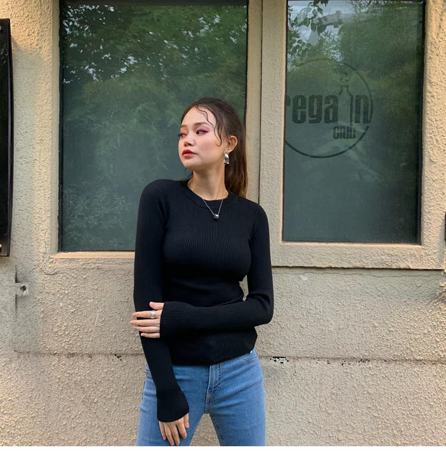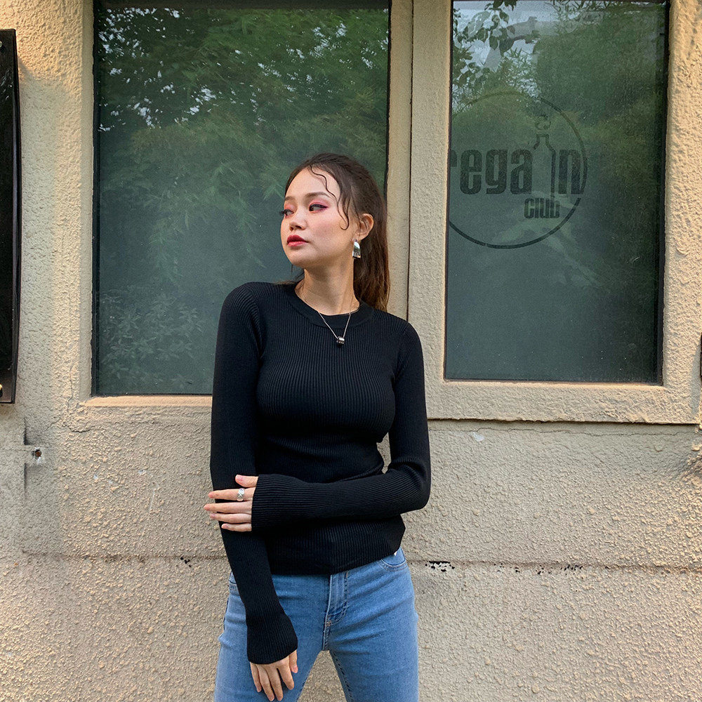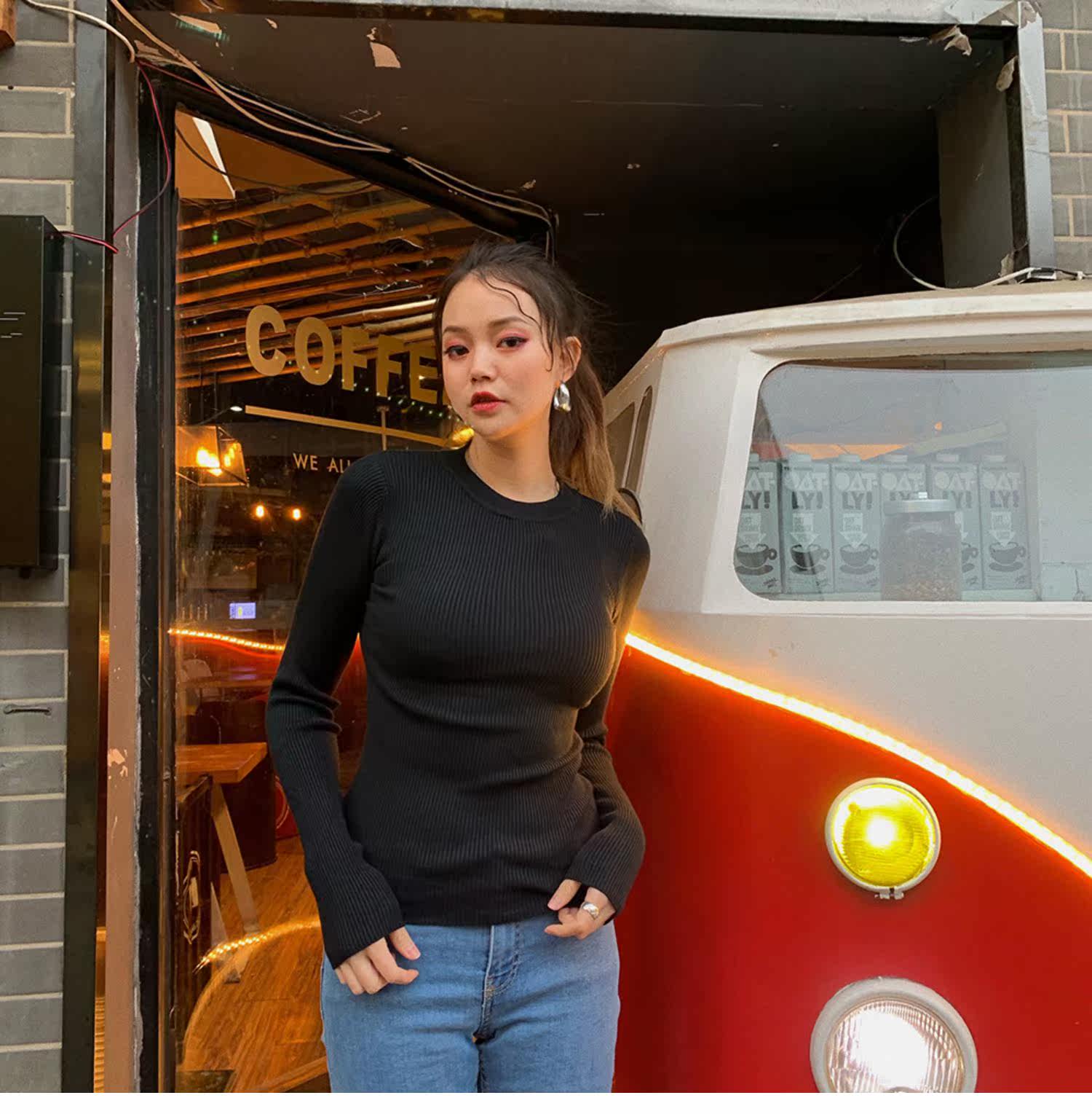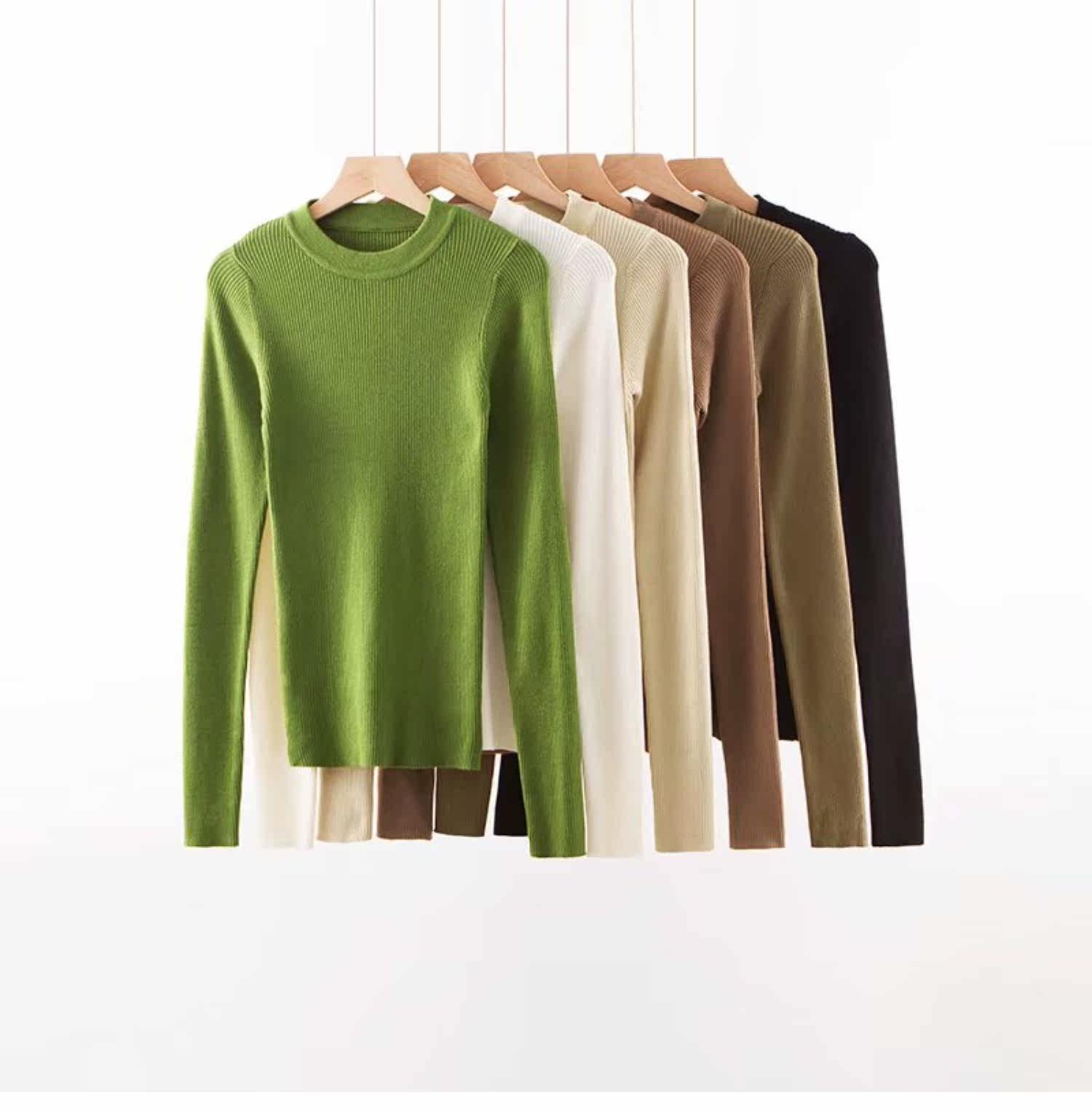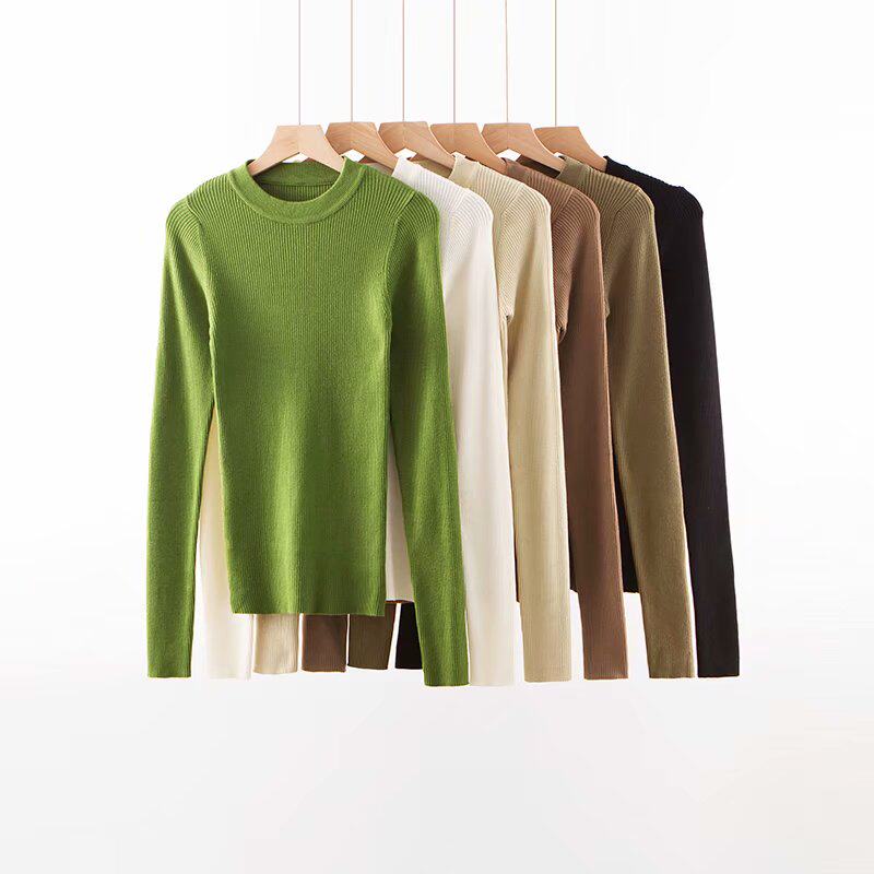 Демисезонный приталенный многоцветный трикотажный свитер, 2019, высокий воротник