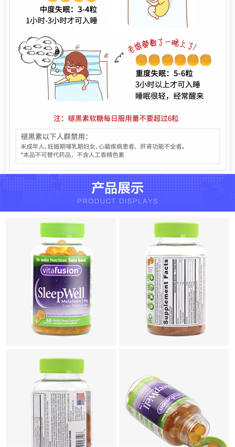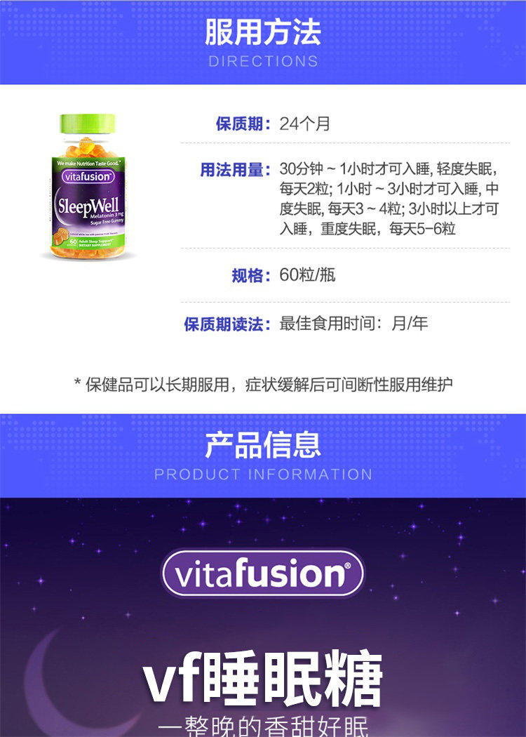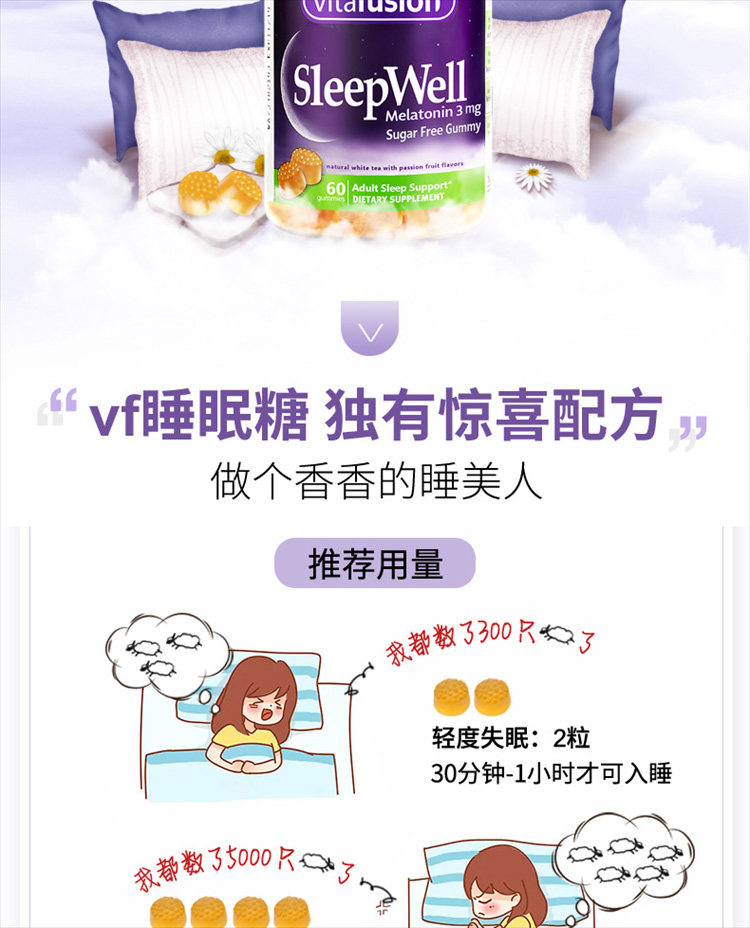 VitaFusion Sleepwell Мелатонин для взрослых помадки 3 мг в сон 60 капсулы/бутылка