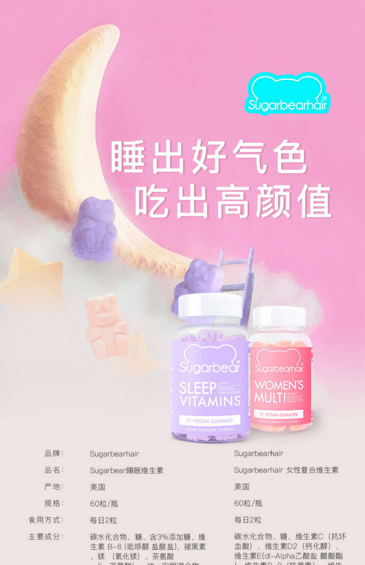Sugarbearhair самка композитные витамины и сон витамина настальные набора 60 капсул/бутылки 2 бутылки