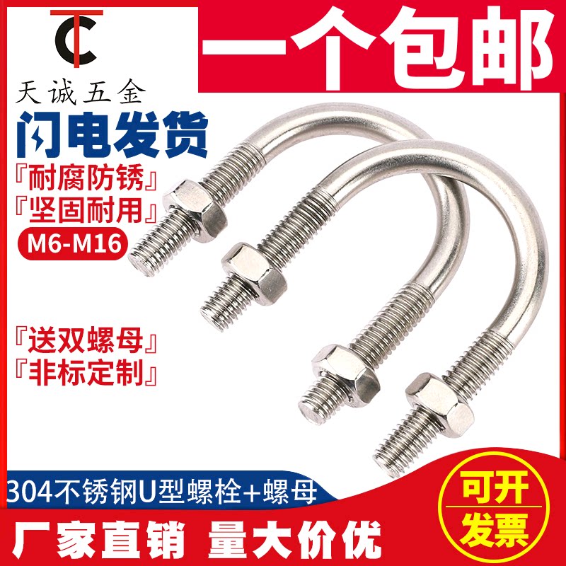 U-образный болт 304 U-образный винт из нержавеющей стали U-образной трубки зажимной трубки M6M8M10M16-M24