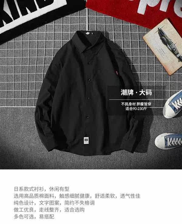 Брендовая японская ретро черная рубашка для школьников и студентов, большой размер