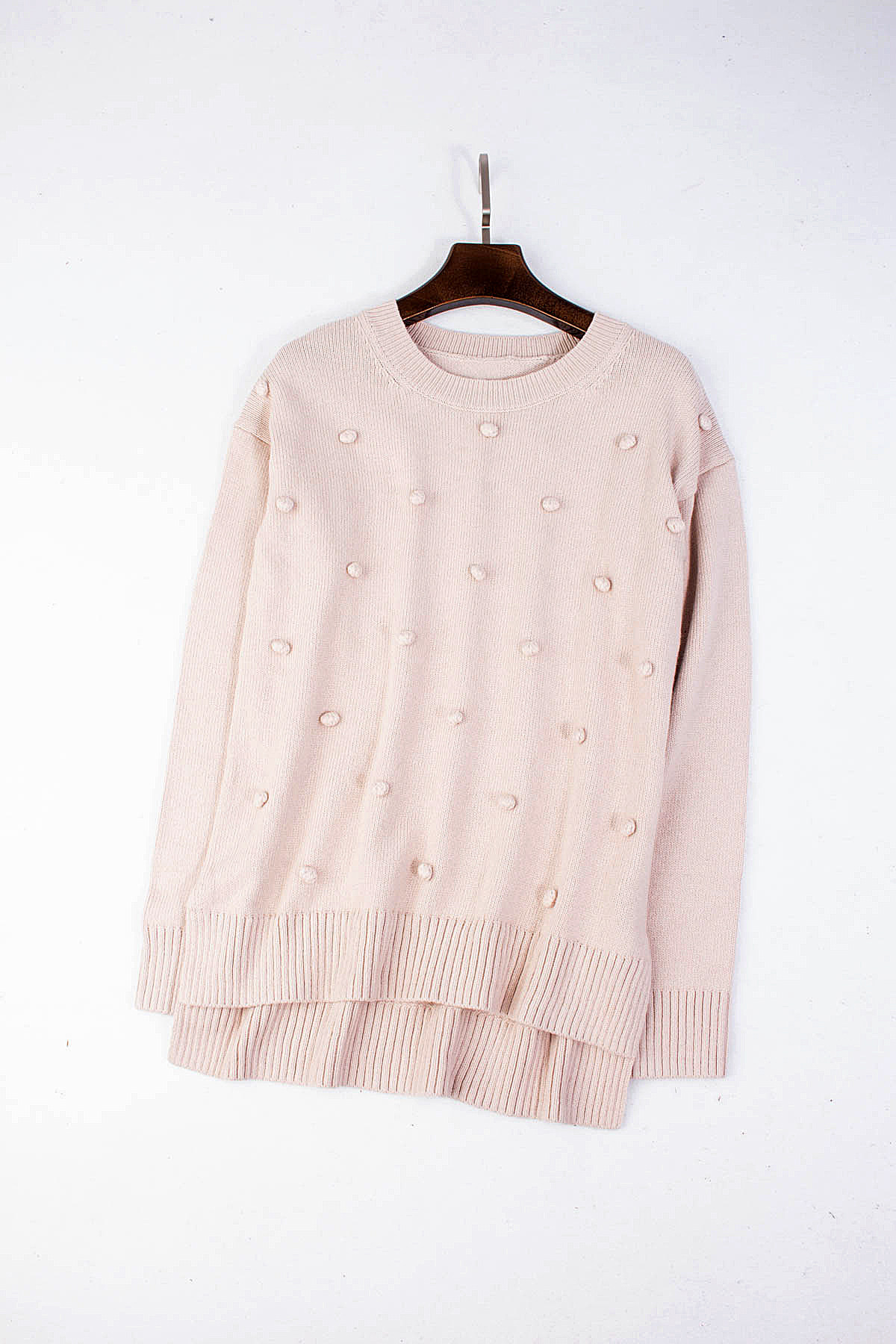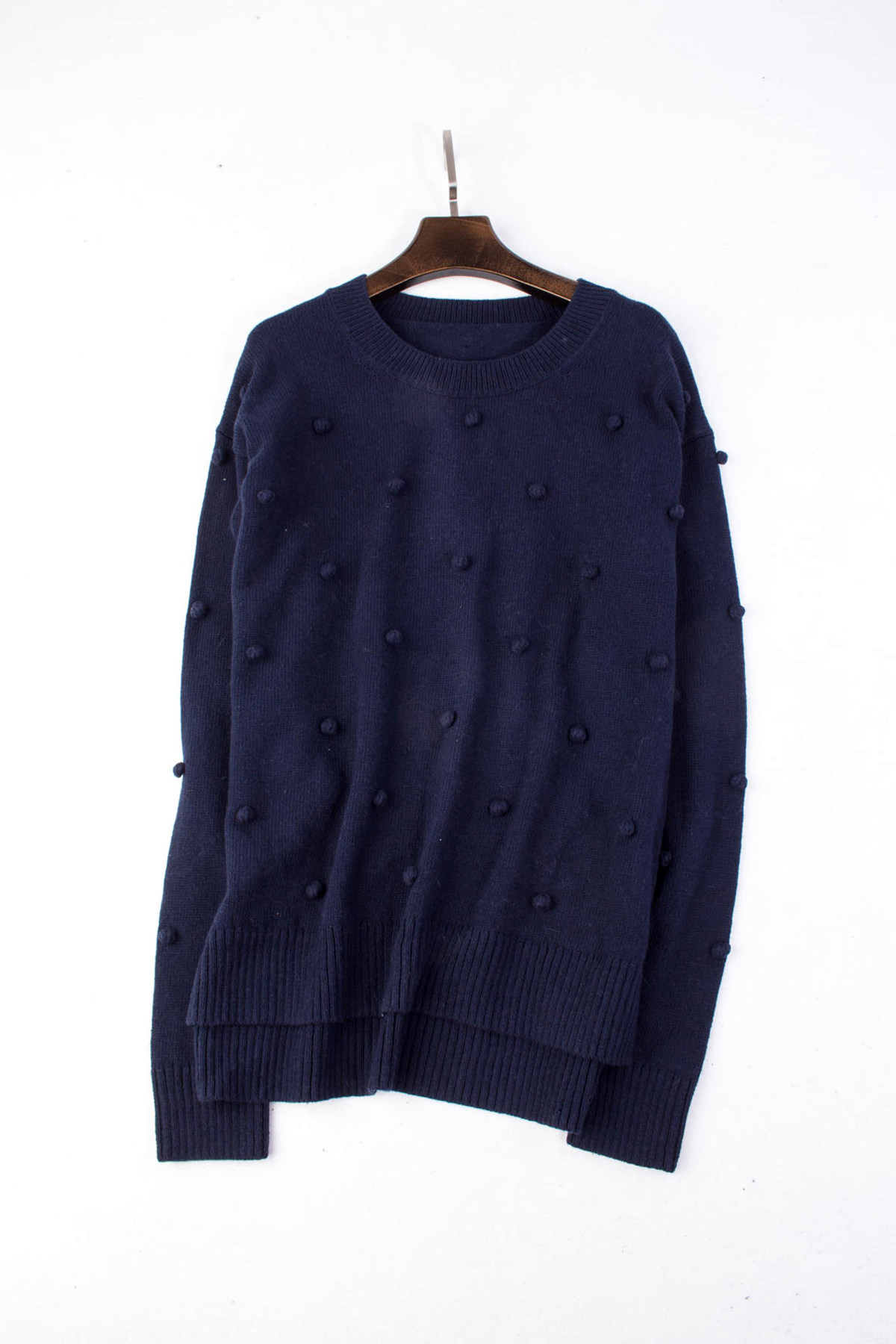 Трикотажный шерстяной свитер с круглым воротником, 36, ассиметричный крой, 70% хлопок