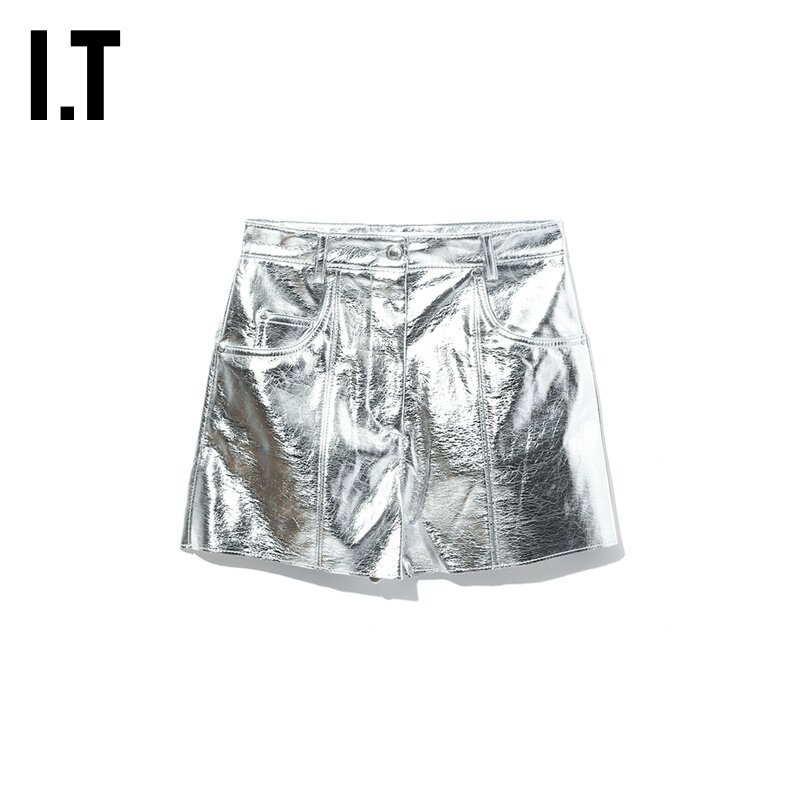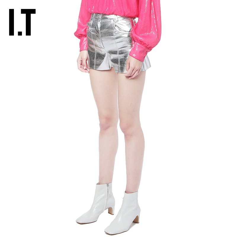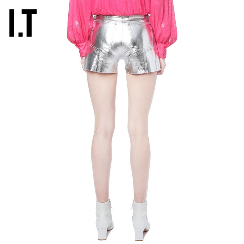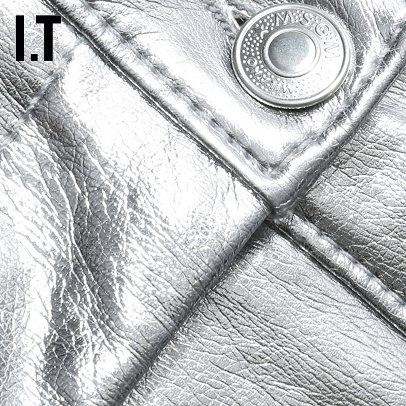 Это MSGM Женские кожаные шорты повседневная тенденция, простая металлическая тонкая карманная отделка 04116AD