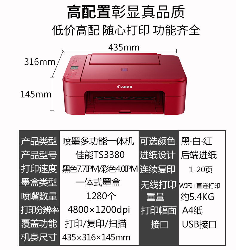 - Canon TS3380 China Red (Wi -Fi Copy Scanning Printing и печатная последовательная подача и больше чернил)