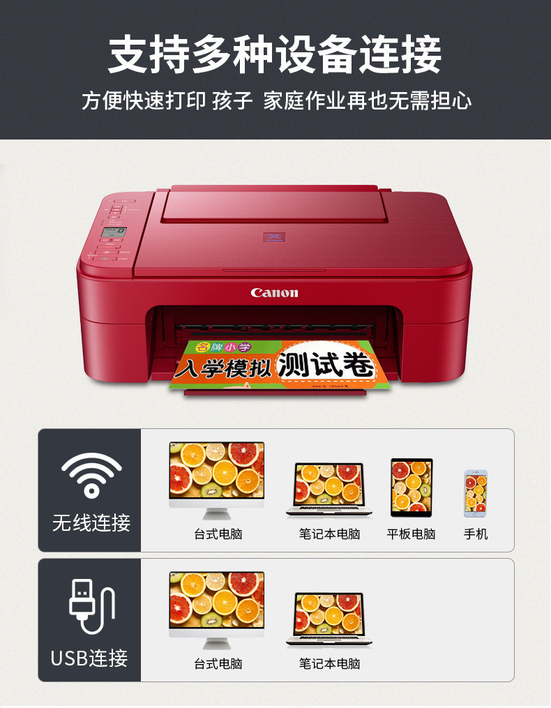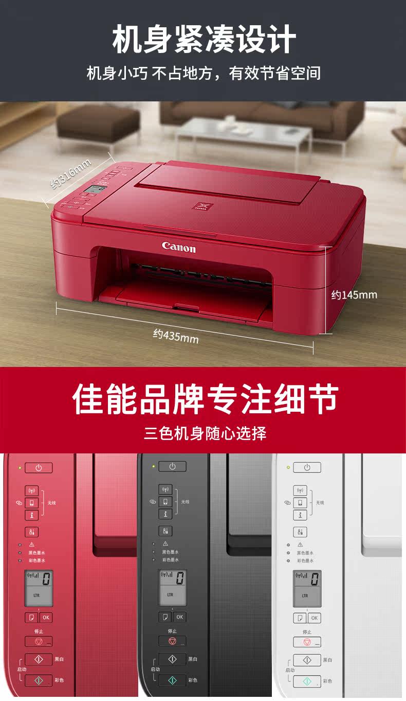 Canon TS3480 Домохозяйства Маленькие принтеры, сканирование всех -в одном мобильном телефоне беспроводной Wi -Fi Long -Range Цвет.