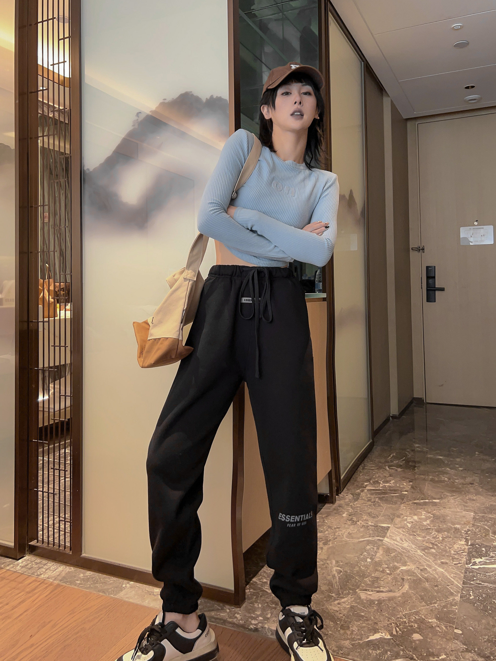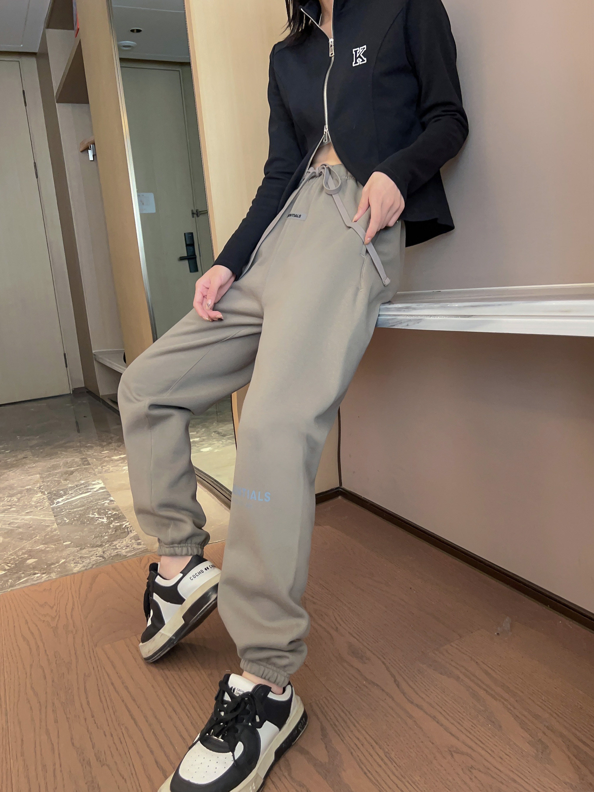 Скидка 50% на свободные длинные спортивные штаны FOG американского модного бренда Essentials со светоотражающими буквами и многострочными буквами на осень и зиму.