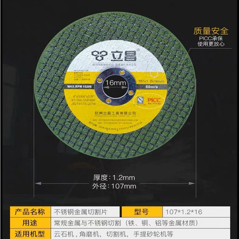 Guangli Sand Wheel 107*1,2*16 мм зеленая часть из нержавеющей стали Специальная угловая мельница Тонкая часть металлическая режущая лист 100