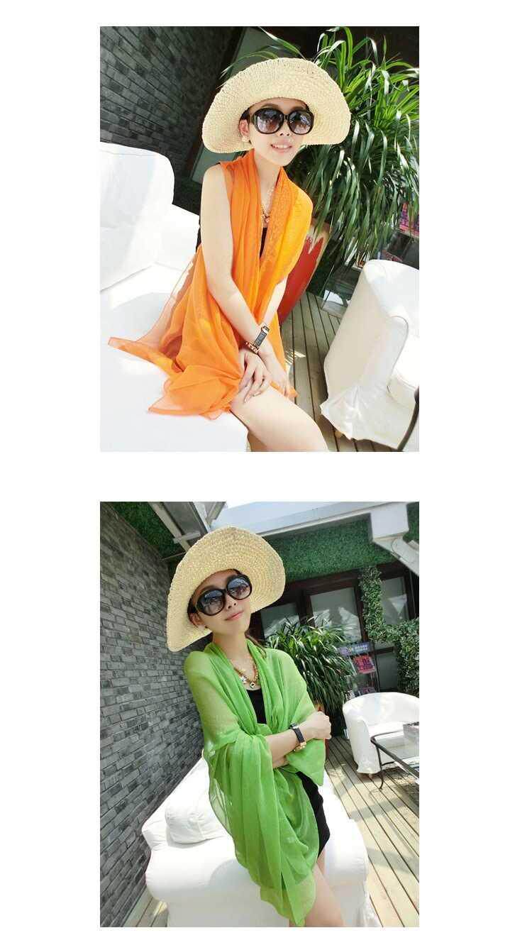 Однотонная пляжная длинная осенняя накидка, шифоновый шарф, защита от солнца, пляжный стиль