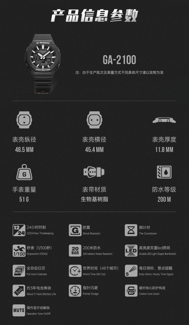 [Celebrity Same Style] Флагманский магазин Casio GA-2100, восьмиугольные спортивные часы для мужчин и женщин CASIO G-SHOCK
