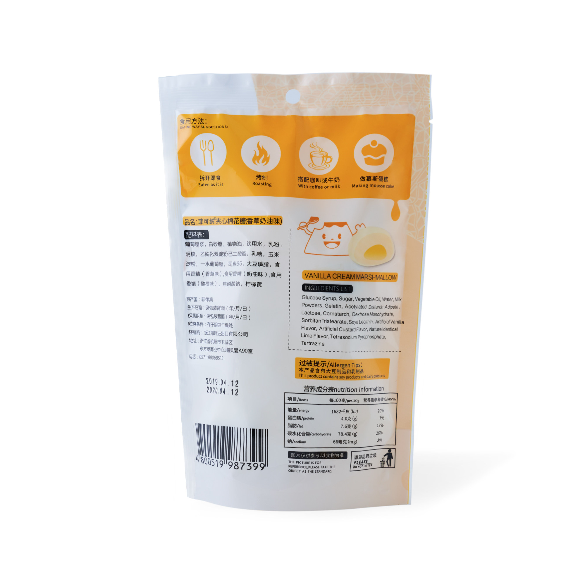 Ficoco Sandwich Marshmallow (ванильный крем -аромат) 60G