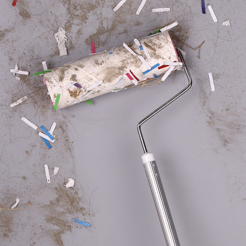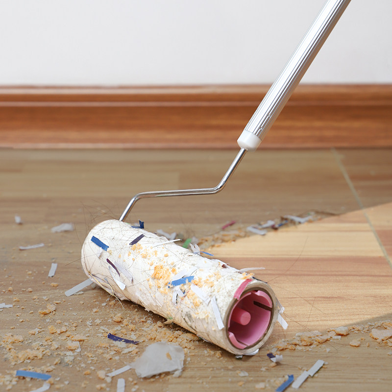 Домохозяйство убирает волосы на волосах на санитарном полу, очистите липкий шерстяной артефакт Длинную ручку, барабан с разрывом, удаляющий волосы