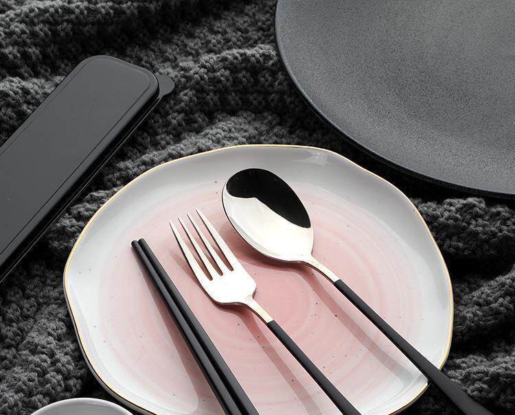 Палочки для еды, ложка, удобный комплект с гравюрой, розовая японская креативная посуда, делается под заказ, простой и элегантный дизайн