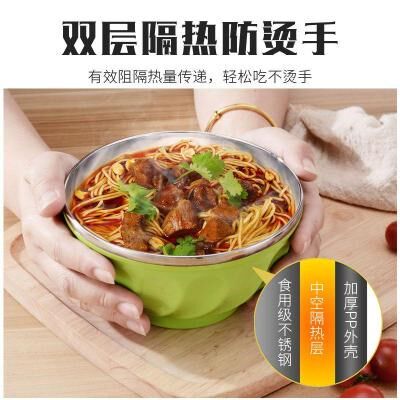 6 Нержавеющая чаша из нержавеющей стали рисовая чаша двойная слоя анти -хот -борьба, еда, горячая чаша, детские студенты Студенты Мгновенная чаша с лапшой