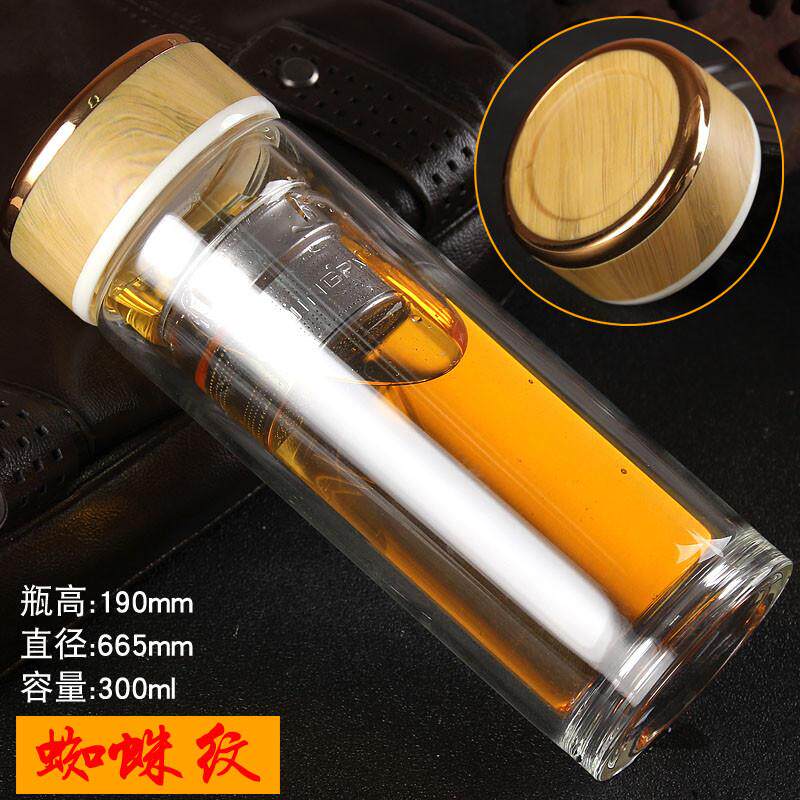 Двойной слой с высокой температурой стеклянной водяной чашки, чтобы выпить большую мощность, пить хрустал утечка. Сеть мужская и женская чашка чайная чашка 300/500L