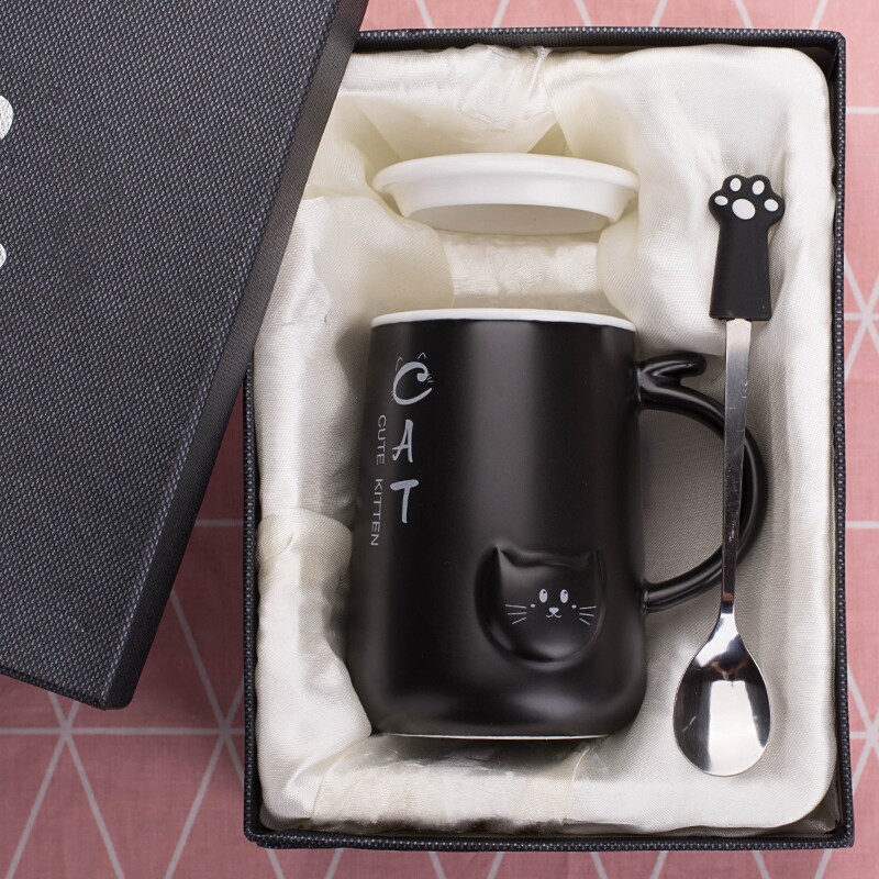 - (Подарочная коробка) Черно -белая (одна пара) милая кошка