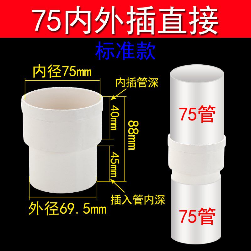 СущностьДренажная труба с низким содержанием воды 50/75/110PVC Внутренняя и внешняя вставка расширяет суставы, чтобы расширить разъем и уменьшить дождевую воду в дождевой воде