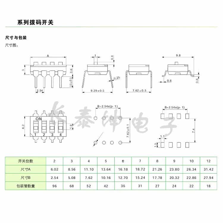 Тумблер прямого подключения, расстояние между переключателями 2,54 мм, 1/2/3/4/5/6/8/10-значный DIP-тумблер, черный
