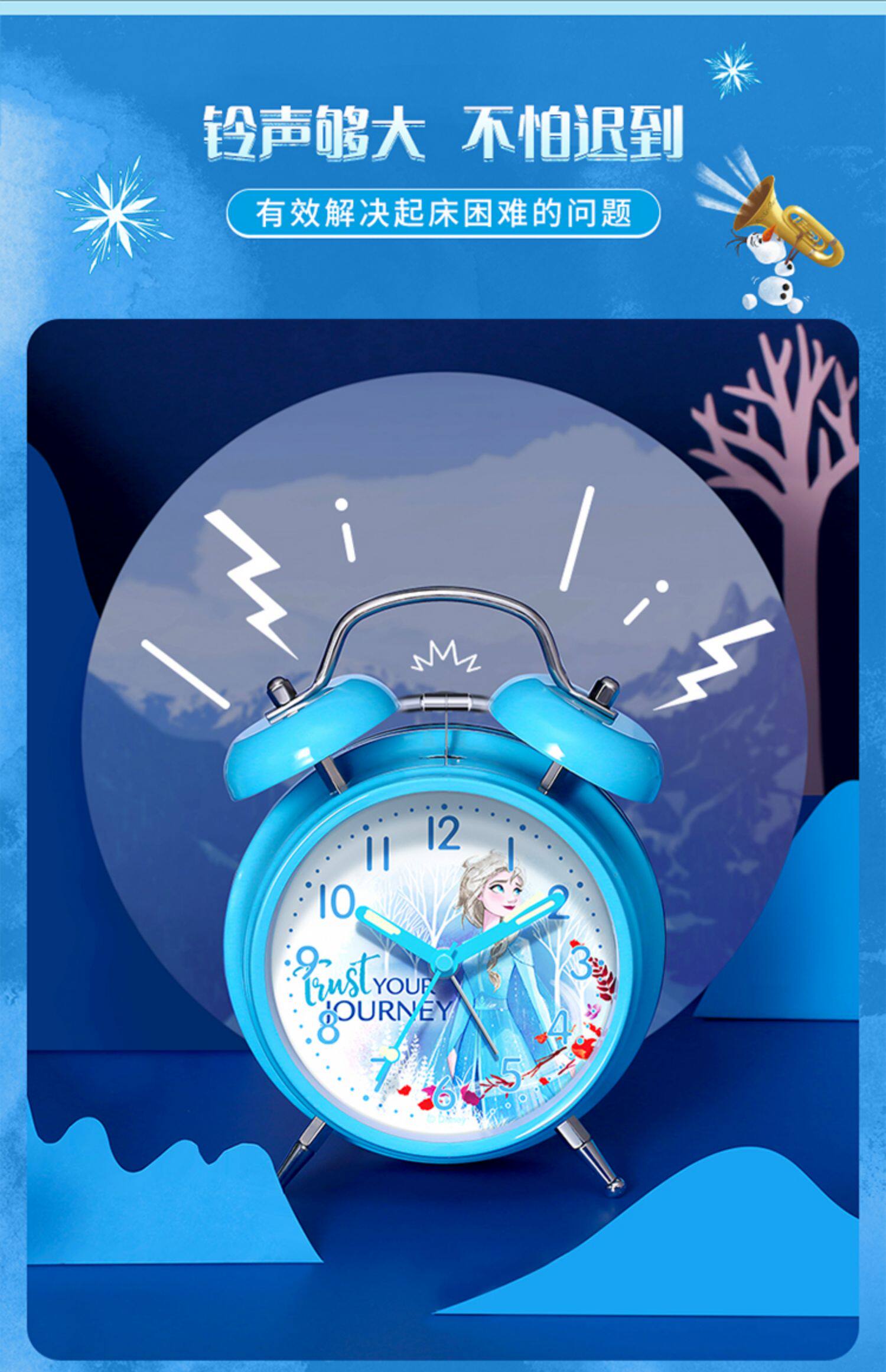 Лед и снег Диснея, Девушка с будильниками, специальный ученик детей, тихий прикроватный мультфильм Симпатичный нордический колокол