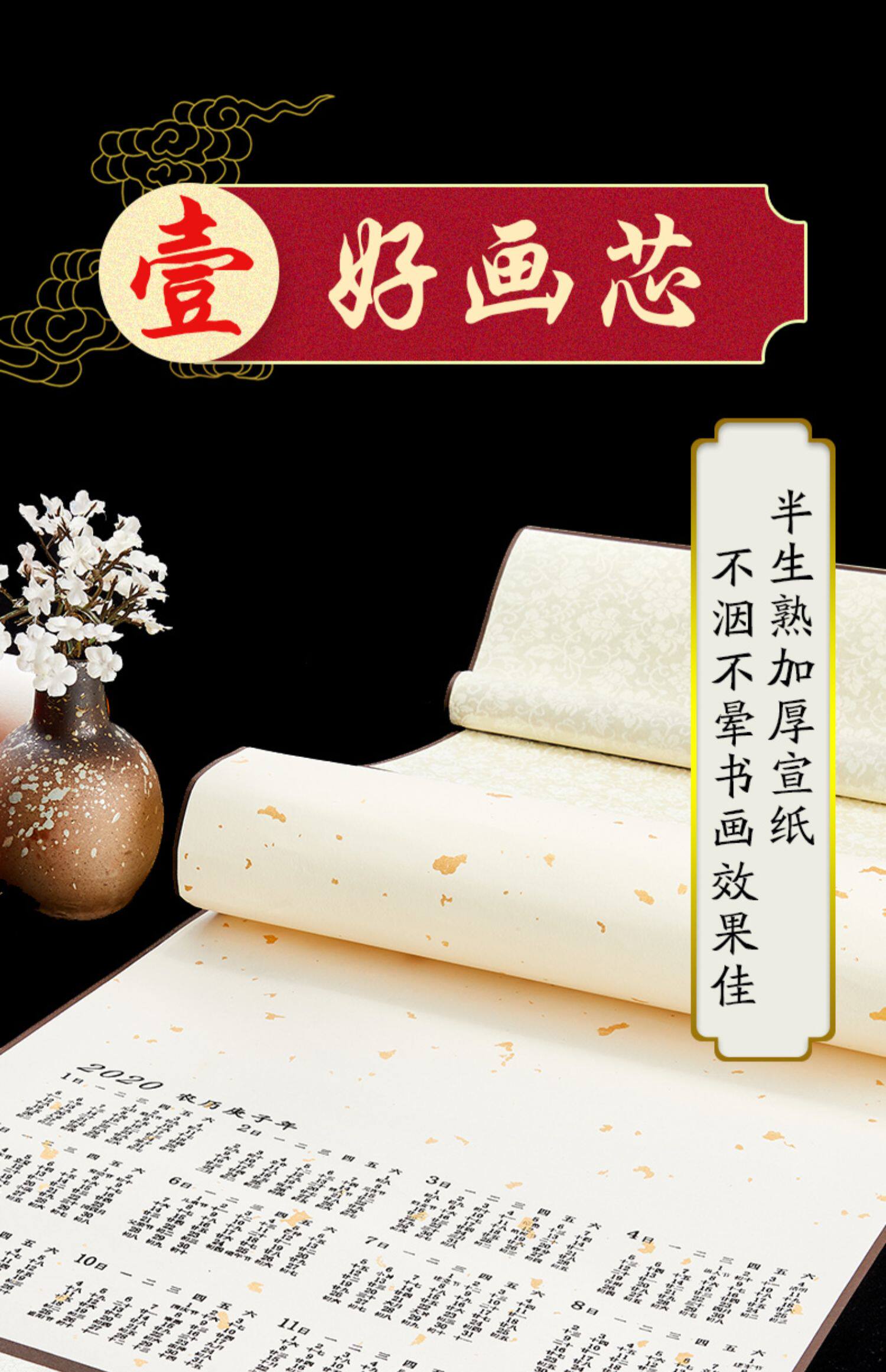 2020 Xuan Paper Vishing Calendar Blank Пара бумажной каллиграфии работы бумаги Каллиграфия бумага Синь Цзинжинг ученые ученые каллиграфия Каллиграфия Специалиста, посвященная полузащитной студенческой окрашенной нарисованной