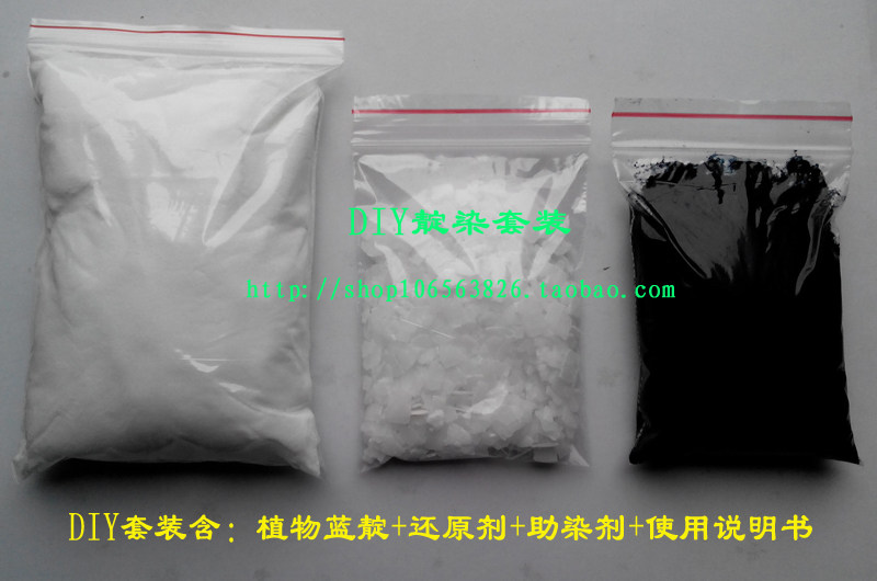 этотDIYНабор, включая: сажать синие красители Dya1пакет (100Грамм/200 грамм), восстановительный агент1Сумка, Краситель1Сумка, 1 копия инструкции.