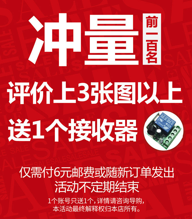 | Цвет: | 12 В один, получающий единый ключ с дистанционным управлением по умолчанию, 24 В. Прием отдельной клавиши дистанционного управления по умолчанию, 12 В, получая двойной ключ с пультом дистанционного управления по умолчанию, 24 В один, получающий пульт дистанционного управления для распознавания двойного ключа, 5 В один приемник, одна пульт дистанционного управления единственной кнопкой, 5 В один приемник, один двойной ключ с пультом дистанционного управления, 6 В один приемник, одна пульт дистанционного управления единственной кнопкой, 6 В один приемник, один двойной ключ с пультом дистанционного управления, Солотентный приемник (за исключением дистанционного управления), Солоксный пульт дистанционного управления (за исключением приемника) |