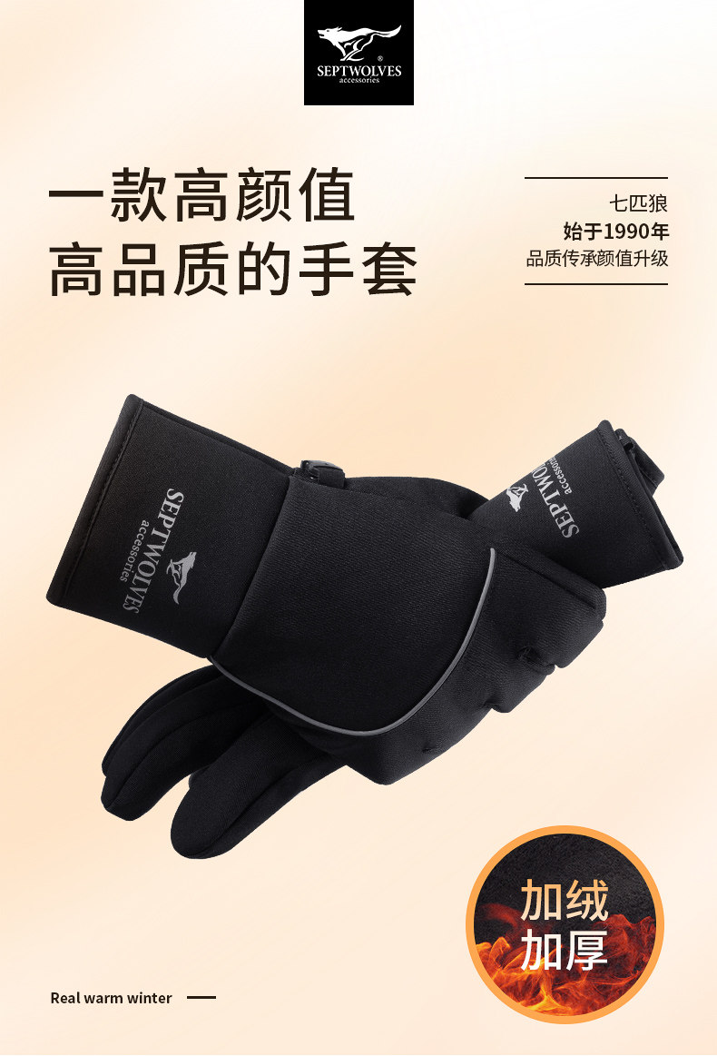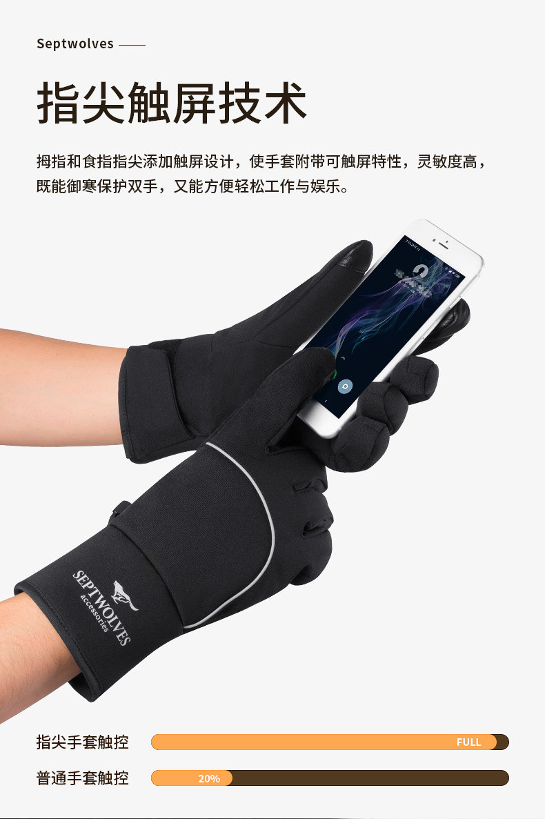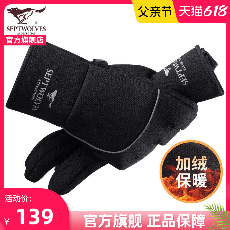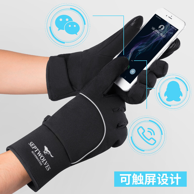 Septwolves, мужские лыжные спортивные трендовые нескользящие дорожные флисовые удерживающие тепло перчатки