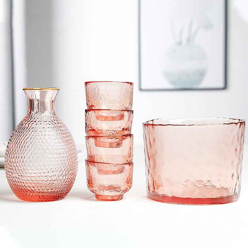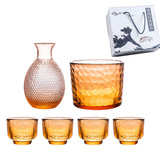 Японская карманная фляжка, комплект, бокал, янтарная с кованным узором стопка, стеклянное рисовое вино