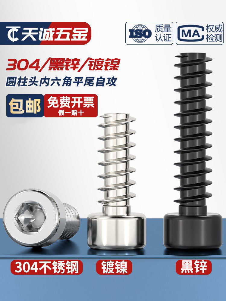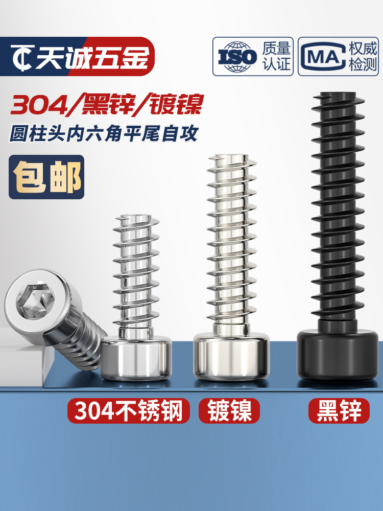 Саморезы из нержавеющей стали 304/никелированные/черного цинка с цилиндрической головкой и шестигранной плоской головкой M2M2.6M3M4M5