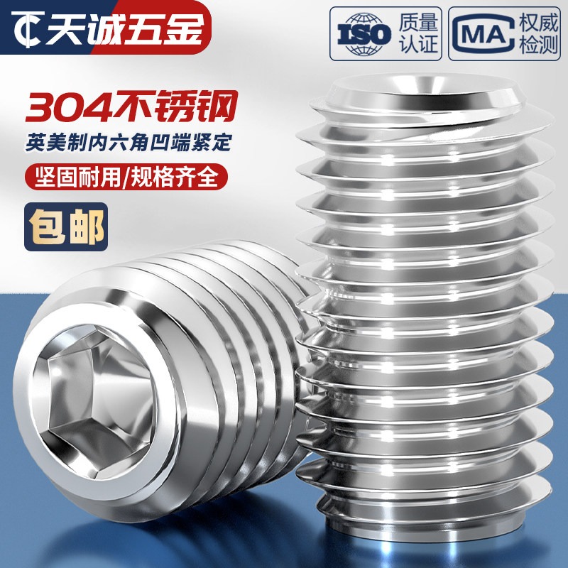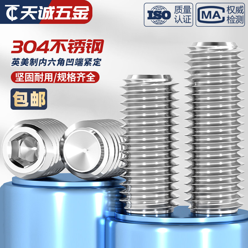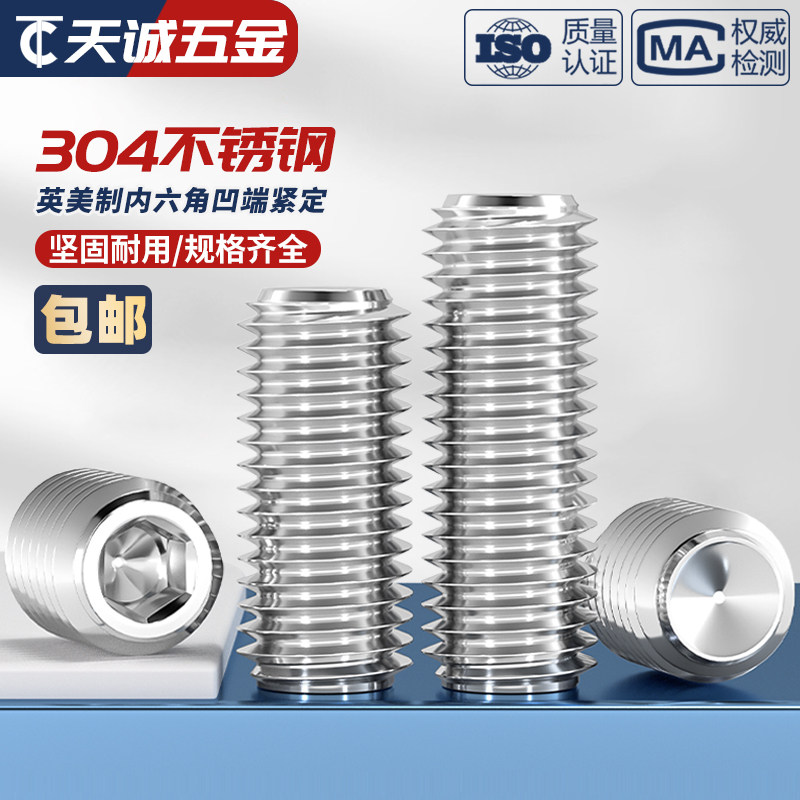 Американские и британские установочные винты из нержавеющей стали UNC/UNF 304, винт без головки, верхний винт с вогнутым концом, шестигранные винты