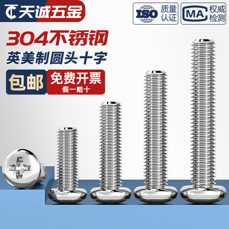 Американский британский винт из нержавеющей стали 304 с крестообразной головкой и круглой головкой, 2#4#6#8#10#1/4-20 зубьев