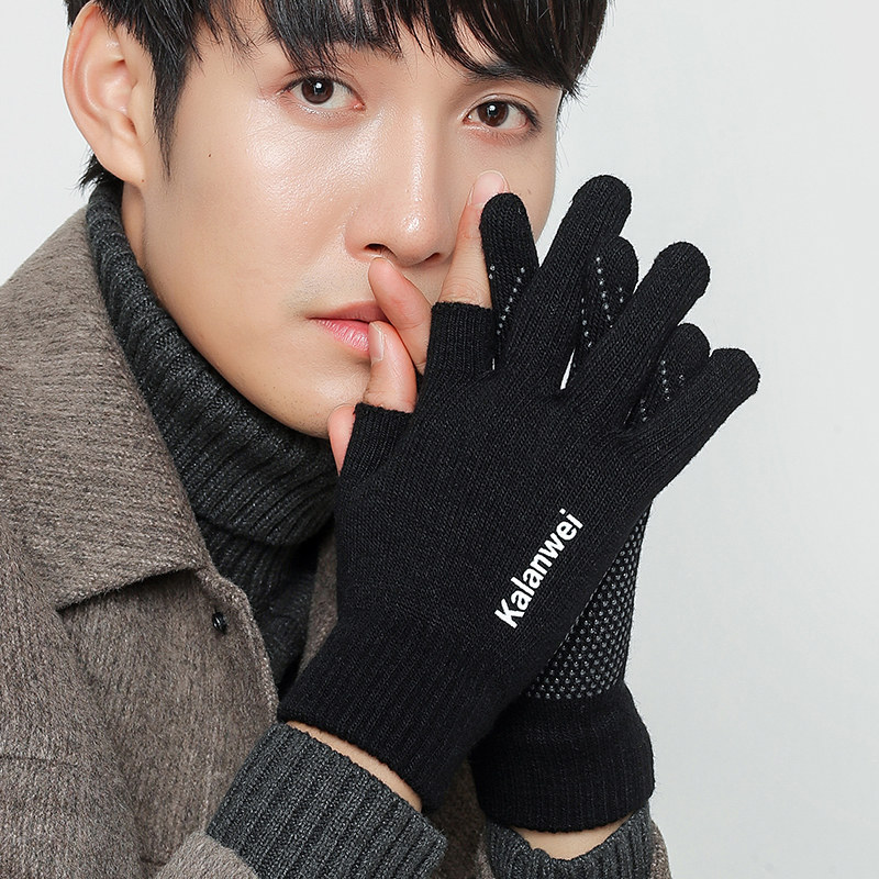Мужские утепленные трикотажные удерживающие тепло перчатки