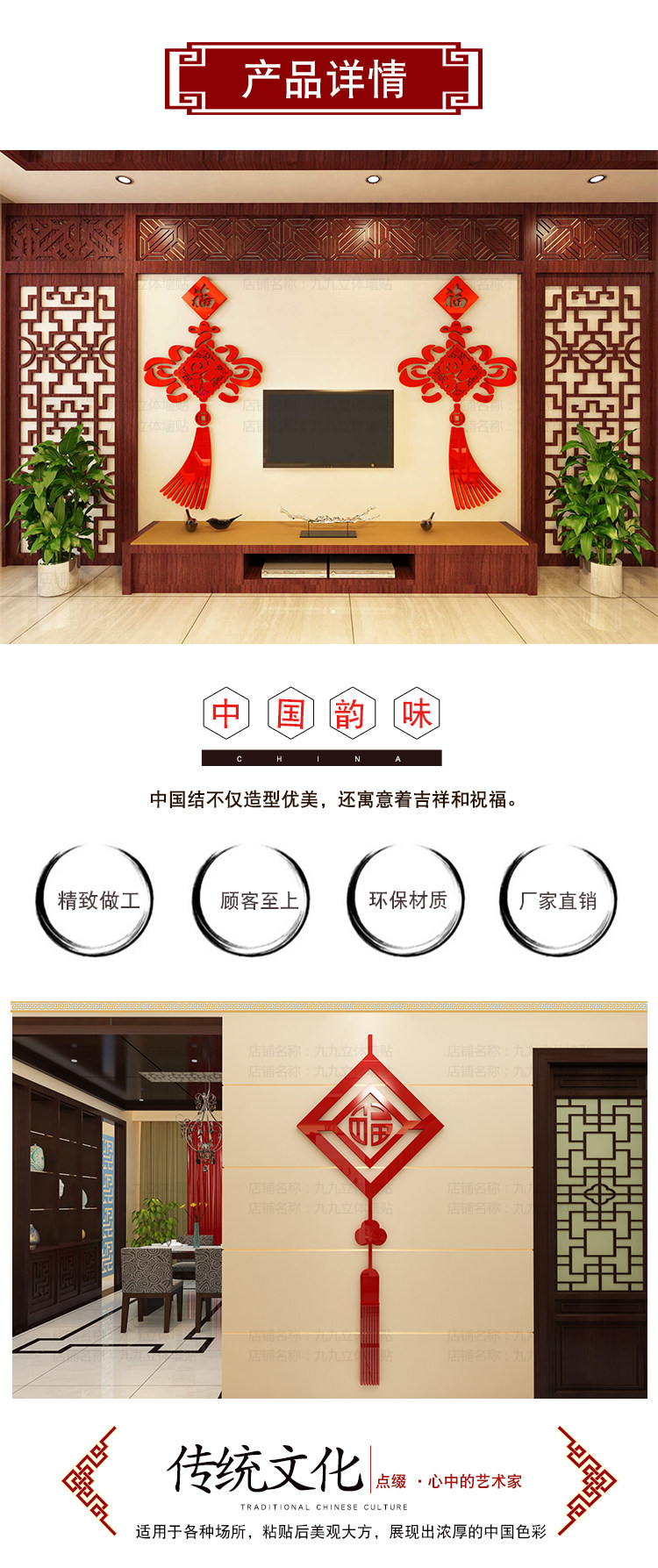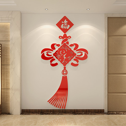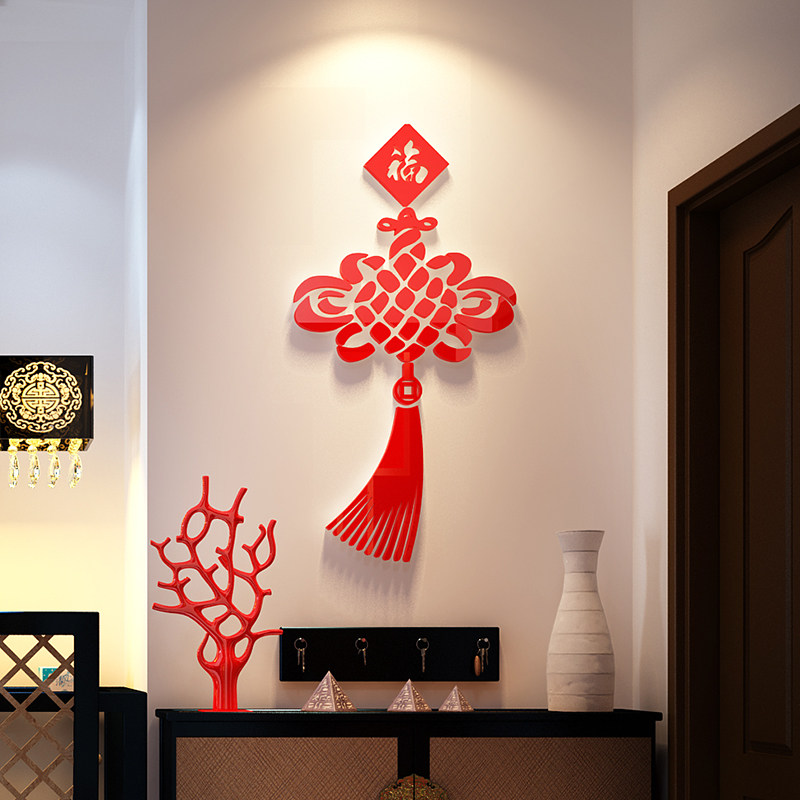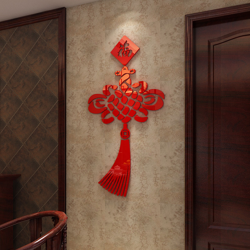 Китайский узел новогодние акриловые 3D трехмерные наклейки на стену гостиной ТВ фон обои украшение для входа в комнату