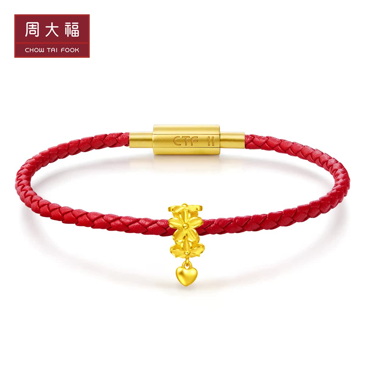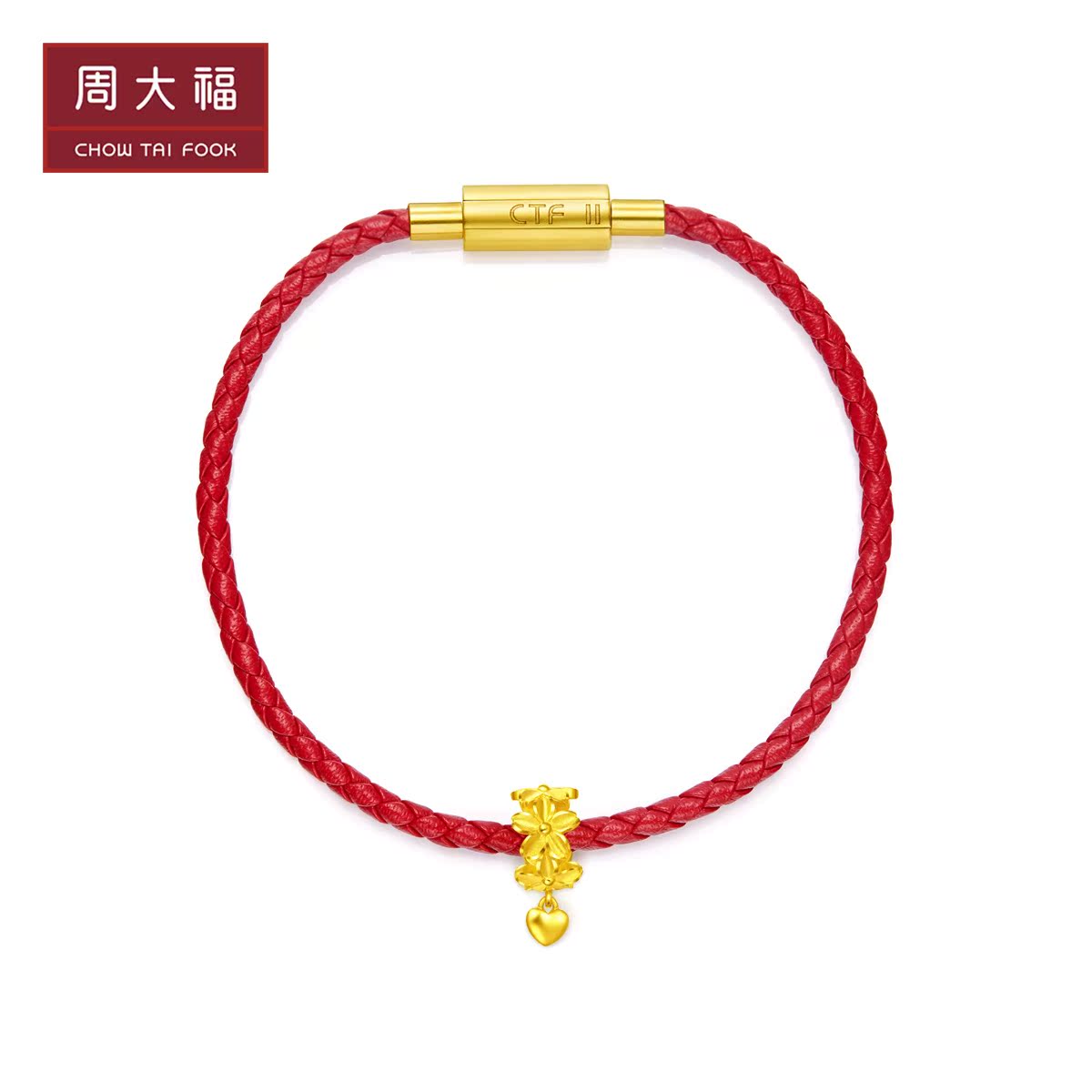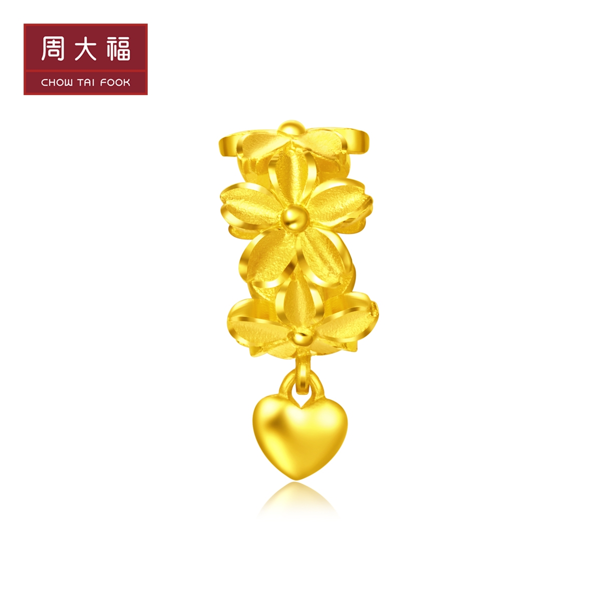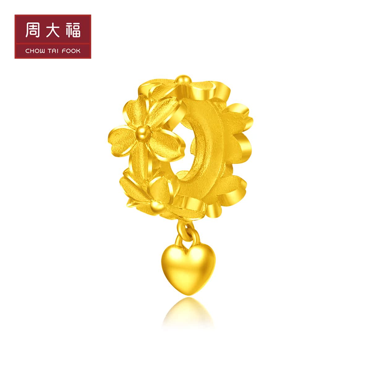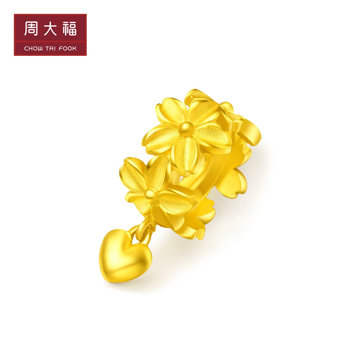 周大福 Золотой браслет с одной бусиной в форме цветка, подвеска