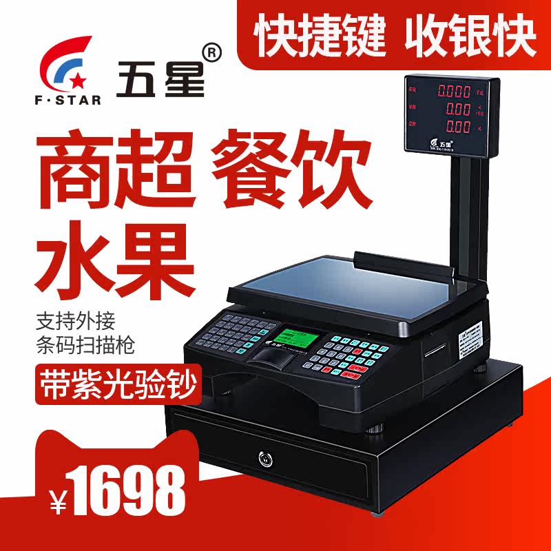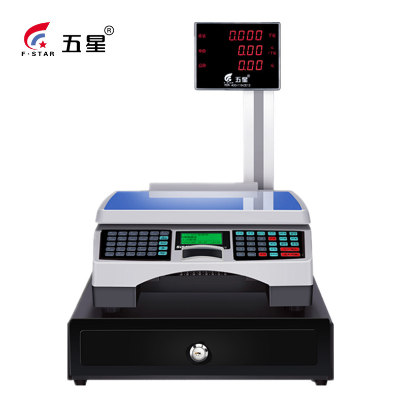 Электронный кассовый регистр -все -в одном пояс для штрих -кодов печати называется весом 30 кг с двумя однопольными магазинами фруктового супермаркета, кулинарный пищевой пищевой, пряный пряный кухонный билет электронный кассир.