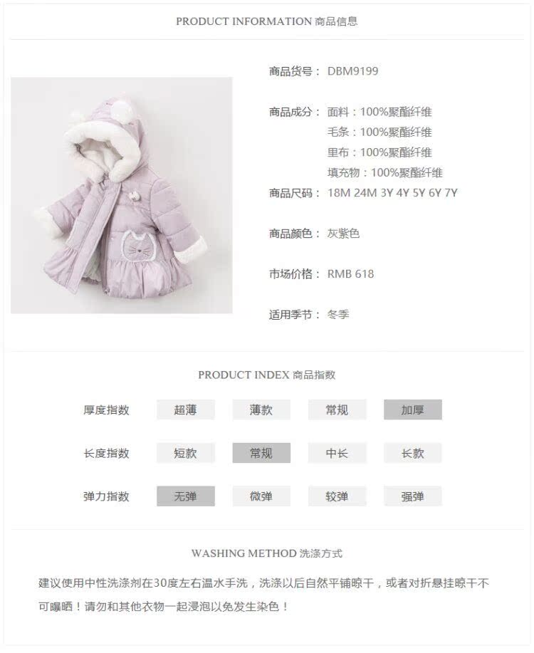 [Специальное предложение Olie Clearance] Дэвид Белла Зимняя девочка детская хлопковая одежда хлопчатобумажной одежды