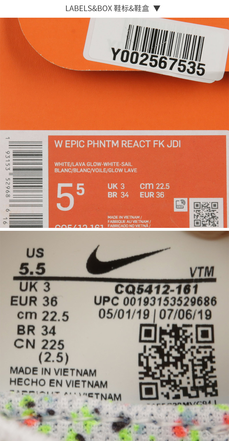 Nike/耐克 Оригинальные мужские и женские спортивные кроссовки EPIC PHNTM REACT FK с амортизацией CQ5412