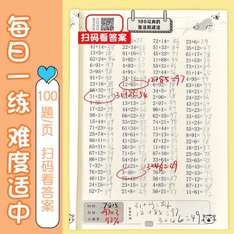 Практика для школьников и студентов для обучения математике для устного счета, каллиграфия, книга для письма для детского сада, практика каждый день, увеличенная толщина, английский
