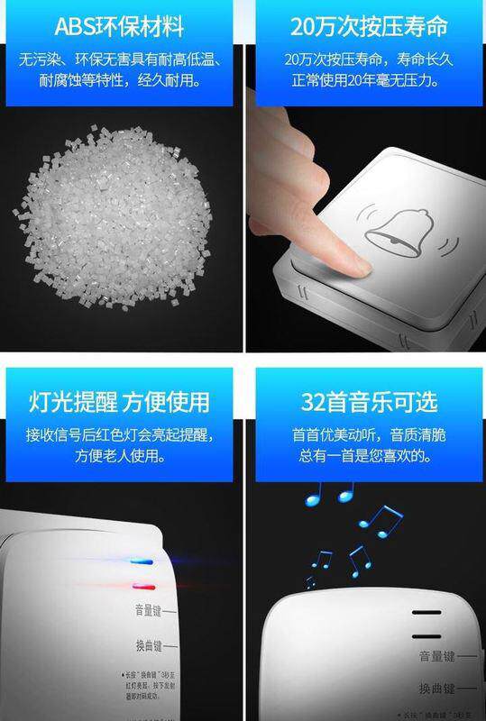Дверная вилла, беспроводная домашняя кровать, одна два -дрейги двух аварийных обычных кнопок колокольчика парализованными каллигаторами для ношения настенных электричества